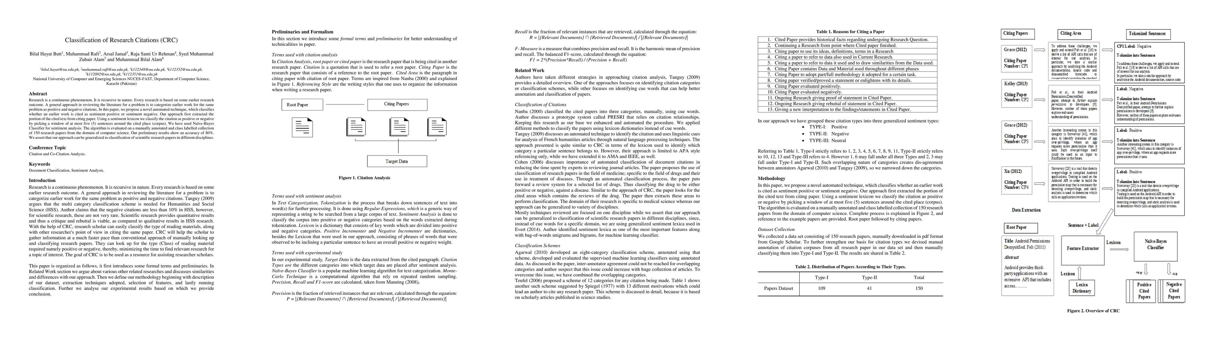 Research is a continuous phenomenon. It is recursive in nature. Every research is based on some earlier research outcome. A general approach in reviewing the literature for a problem is to categorize earlier work for the same problem as positive and negative citations. In this paper, we propose a novel automated technique, which classifies whether an earlier work is cited as sentiment positive or sentiment negative. Our approach first extracted the portion of the cited text from citing paper. Using a sentiment lexicon we classify the citation as positive or negative by picking a window of at most five (5) sentences around the cited place (corpus). We have used Na\"ive-Bayes Classifier for sentiment analysis. The algorithm is evaluated on a manually annotated and class labelled collection of 150 research papers from the domain of computer science. Our preliminary results show an accuracy of 80%. We assert that our approach can be generalized to classification of scientific research papers in different disciplines.