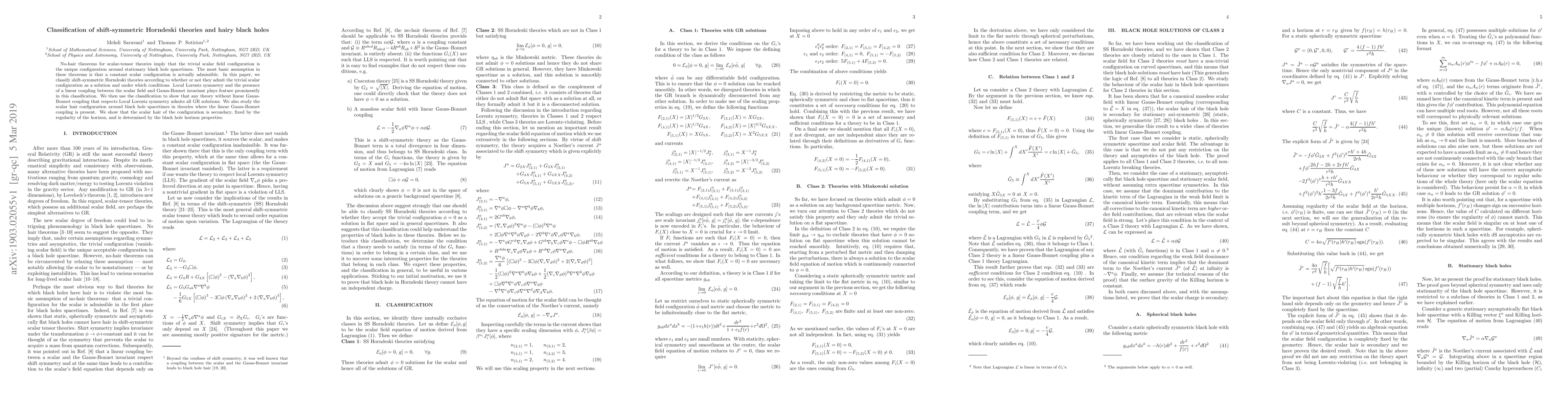 No-hair theorems for scalar-tensor theories imply that the trivial scalar field configuration is the unique configuration around stationary black hole spacetimes. The most basic assumption in these theorems is that a constant scalar configuration is actually admissible. In this paper, we classify shift-symmetric Horndeski theories according to whether or not they admit the trivial scalar configuration as a solution and under which conditions. Local Lorentz symmetry and the presence of a linear coupling between the scalar field and Gauss-Bonnet invariant plays feature prominently in this classification. We then use the classification to show that any theory without linear Gauss-Bonnet coupling that respects Local Lorentz symmetry admits all GR solutions. We also study the scalar hair configuration around black hole spacetimes in theories where the linear Gauss-Bonnet coupling is present. We show that the scalar hair of the configuration is secondary, fixed by the regularity of the horizon, and is determined by the black hole horizon properties.