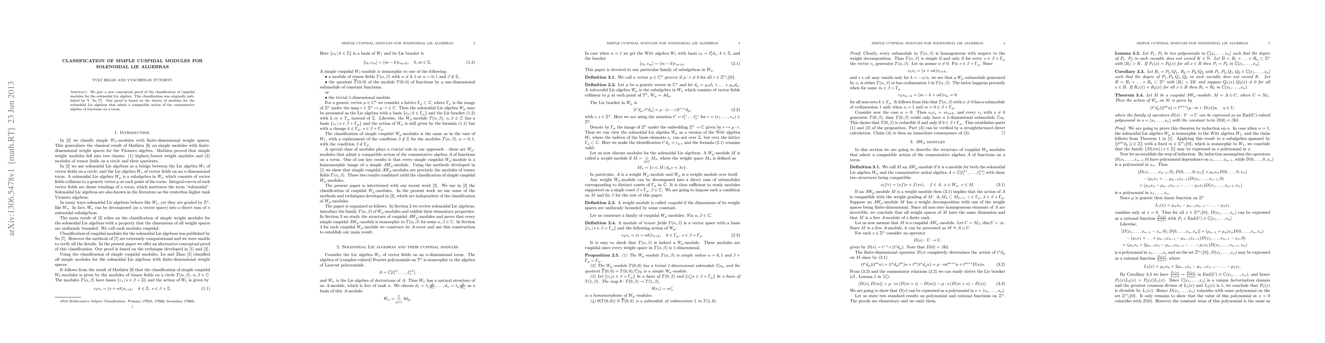 We give a new conceptual proof of the classification of cuspidal modules for the solenoidal Lie algebra. This classification was originally published by Y.Su. Our proof is based on the theory of modules for the solenoidal Lie algebras that admit a compatible action of the commutative algebra of functions on a torus.
