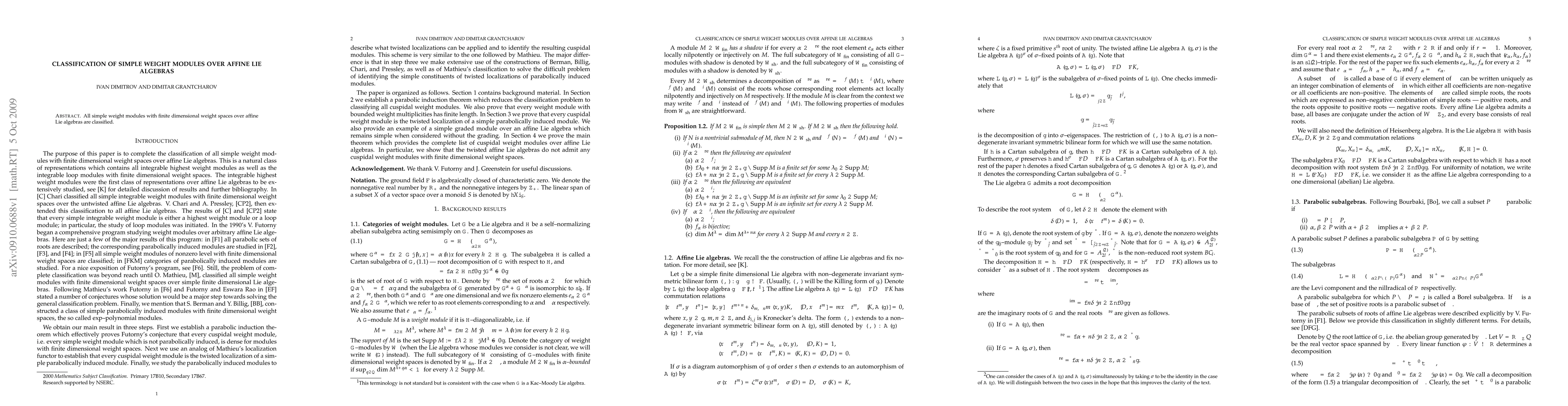 The paper classifies all simple weight modules with finite-dimensional weight spaces over affine Lie algebras, providing a comprehensive overview of their structure and properties. This classification aids in understanding the module theory for these important algebraic objects.