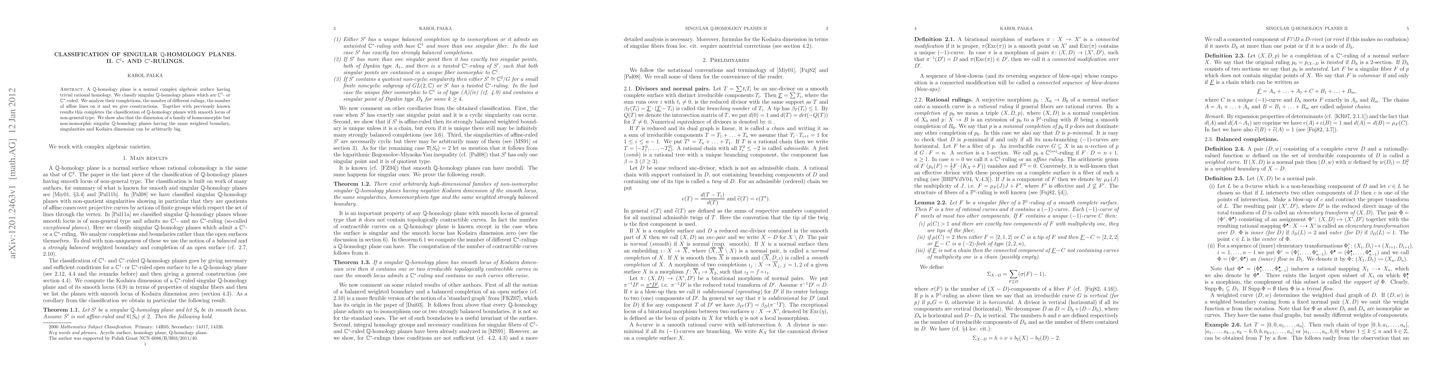 This paper classifies singular Q-homology planes that are C^1- or C*-ruled, analyzing their completions, rulings, and affine lines, and provides constructions. It completes the classification of such planes with a smooth locus of non-general type and shows the dimension of families of homeomorphic but non-isomorphic singular Q-homology planes can be arbitrarily large.