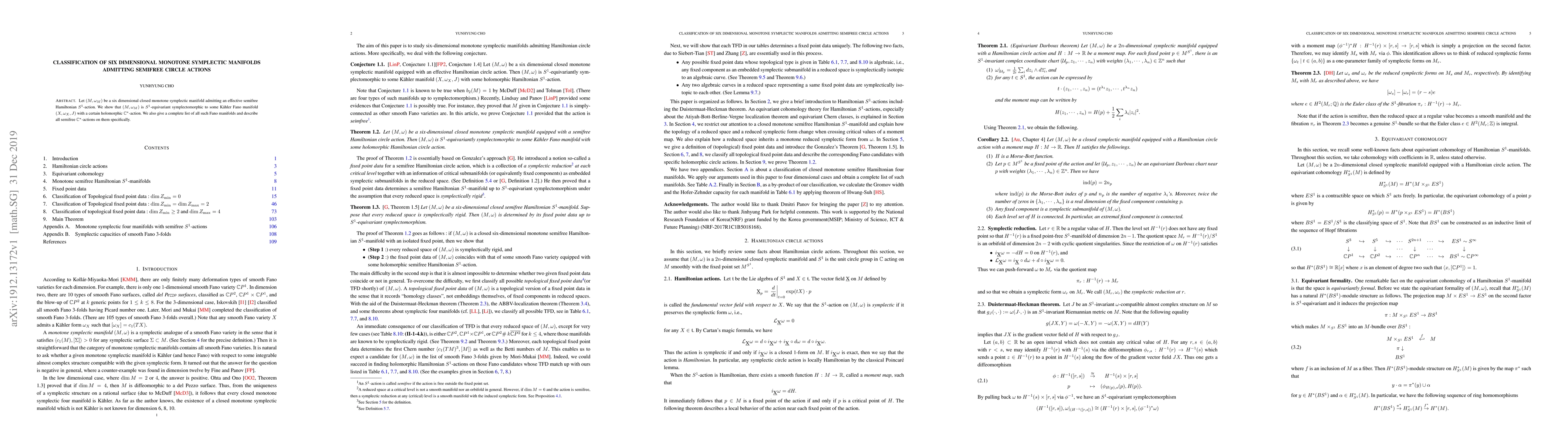 This paper classifies six-dimensional monotone symplectic manifolds with semifree circle actions, proving they are symplectomorphic to specific Kähler Fano manifolds with a particular holomorphic $\mathbb{C}^*$-action, and provides a complete list of these Fano manifolds and their semifree $\mathbb{C}^*$-actions.