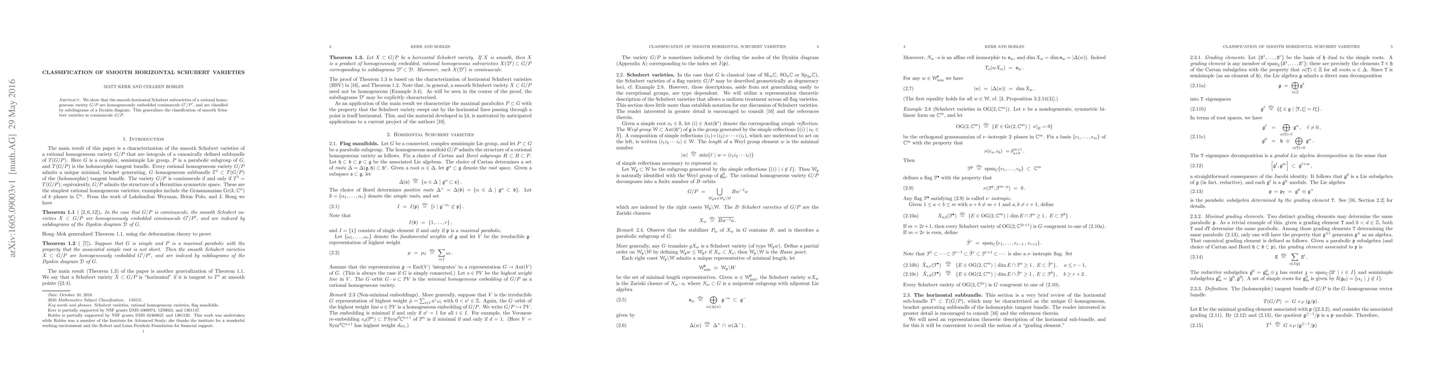 We show that the smooth horizontal Schubert subvarieties of a rational homogeneous variety $G/P$ are homogeneously embedded cominuscule $G'/P'$, and are classified by subdiagrams of a Dynkin diagram. This generalizes the classification of smooth Schubert varieties in cominuscule $G/P$.