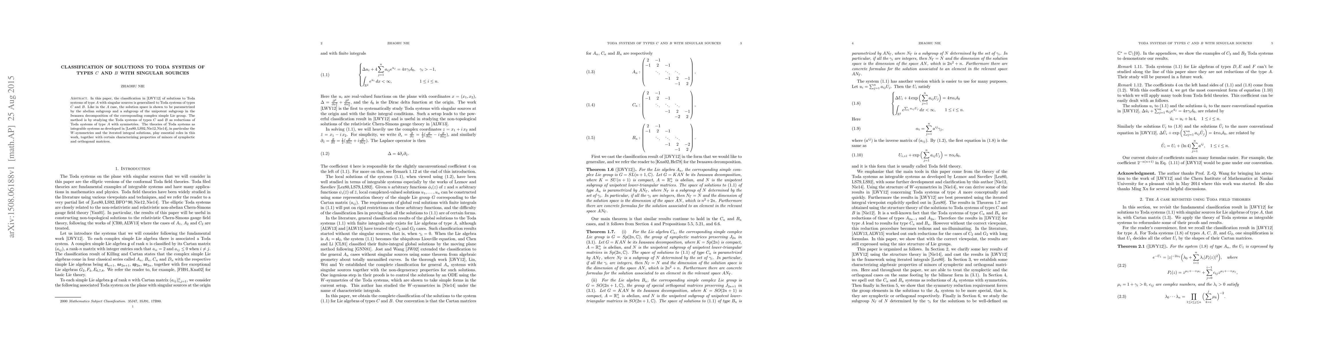 This paper generalizes the classification of Toda systems of type $A$ with singular sources to types $C$ and $B$, showing that solution spaces are parametrized by abelian and unipotent subgroups in the Iwasawa decomposition of corresponding Lie groups. The method involves reducing Toda systems of types $C$ and $B$ from those of type $A$ using symmetries and leveraging integrable system theories.