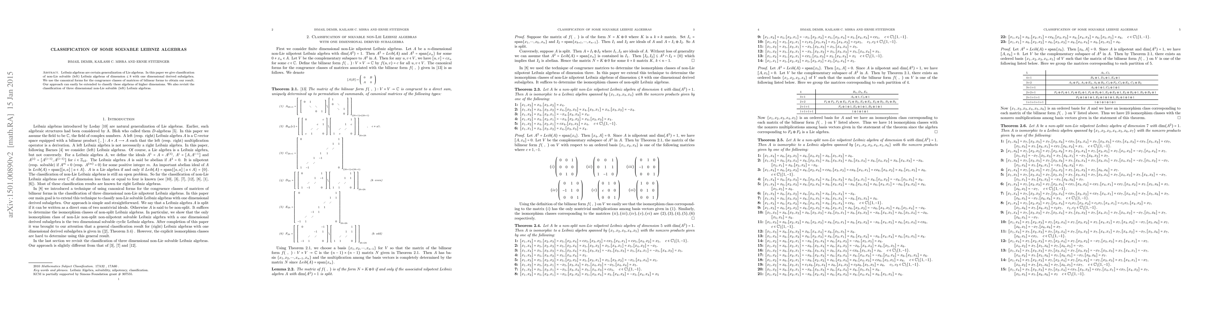 Leibniz algebras are certain generalization of Lie algebras. In this paper we give classification of non-Lie solvable (left) Leibniz algebras of dimension $\leq 8$ with one dimensional derived subalgebra. We use the canonical forms for the congruence classes of matrices of bilinear forms to obtain our result. Our approach can easily be extended to classify these algebras of higher dimensions. We also revisit the classification of three dimensional non-Lie solvable (left) Leibniz algebras.