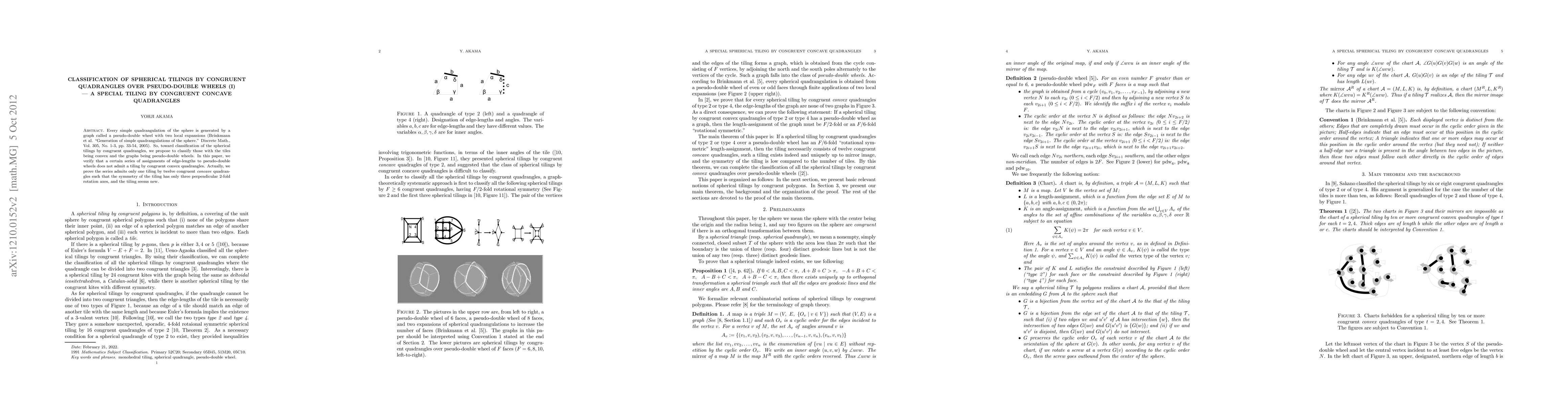 This paper classifies spherical tilings generated by pseudo-double wheels, focusing on those with congruent concave quadrangles. It demonstrates that a specific series of edge-length assignments allows only one unique tiling by twelve congruent concave quadrangles, exhibiting limited symmetry.