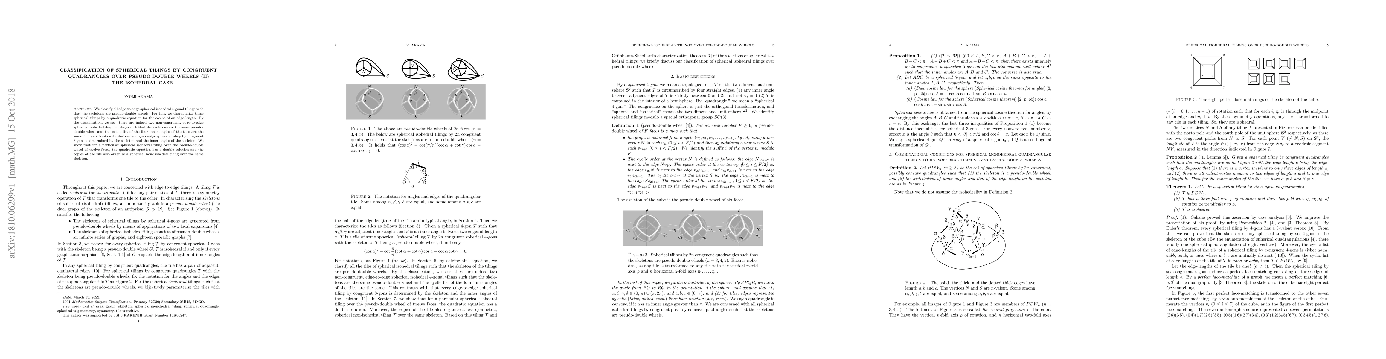 This paper classifies spherical isohedral 4-gonal tilings with pseudo-double wheel skeletons, revealing that two non-congruent tilings can share the same skeleton and angle list, unlike 3-gonal tilings. It also finds that a specific tiling with a pseudo-double wheel of twelve faces has a double solution in its quadratic equation, leading to a non-isohedral tiling over the same structure.
