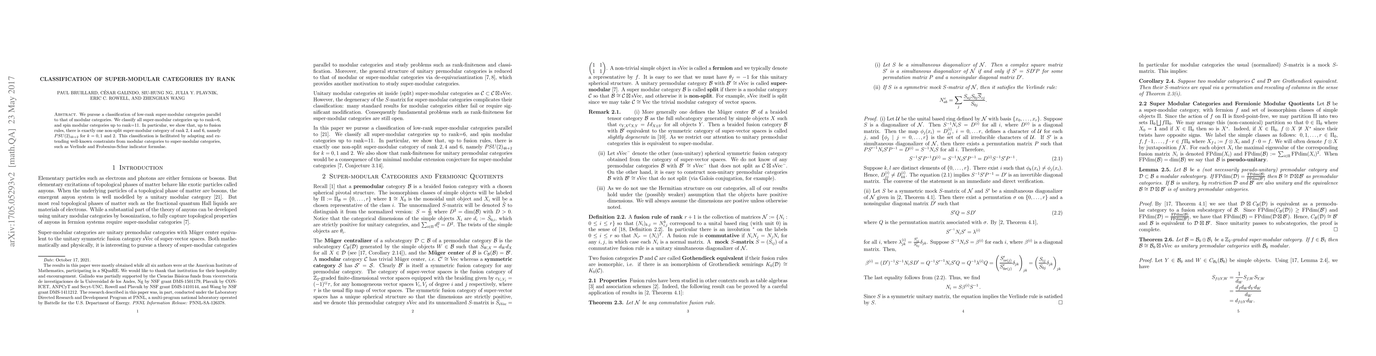 This paper classifies low-rank super-modular categories up to rank 6, finding exactly one non-split category for ranks 2, 4, and 6. The classification leverages adaptations of constraints from modular categories, including Verlinde and Frobenius-Schur indicators.