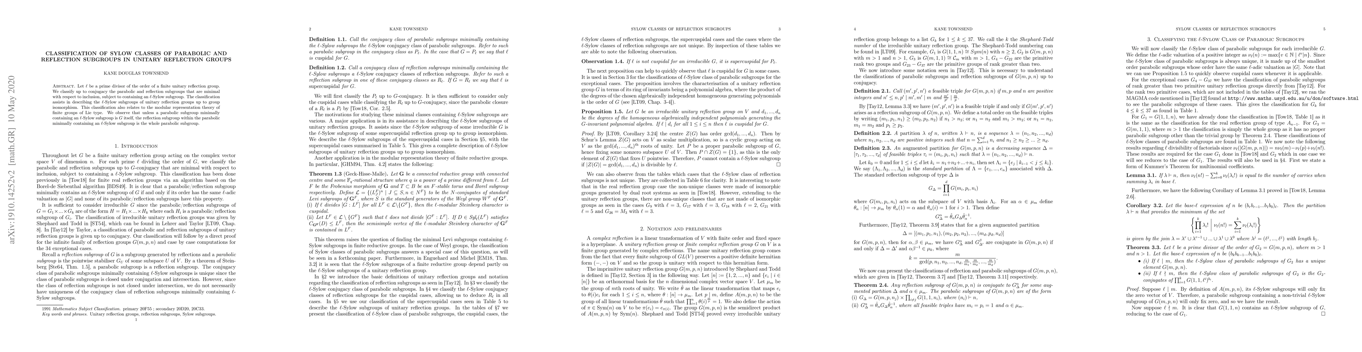 Let $\ell$ be a prime divisor of the order of a finite unitary reflection group. We classify up to conjugacy the parabolic and reflection subgroups that are minimal with respect to inclusion, subject to containing an $\ell$-Sylow subgroup. The classification assists in describing the $\ell$-Sylow subgroups of unitary reflection groups up to group isomorphism. This classification also relates to the modular representation theory of finite groups of Lie type. We observe that unless a parabolic subgroup minimally containing an $\ell$-Sylow subgroup is $G$ itself, the reflection subgroup within the parabolic minimally containing an $\ell$-Sylow subgroup is the whole parabolic subgroup.