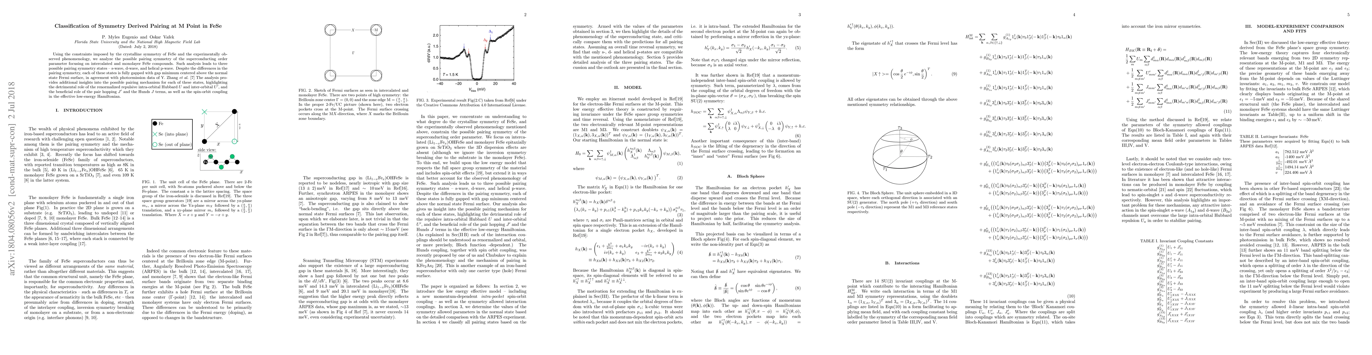 Researchers analyze FeSe compounds to classify possible pairing symmetry of their superconducting order parameter, identifying three states: s-wave, d-wave, and helical p-wave, with implications for understanding the pairing mechanism and effects of Hubbard U and spin-orbit coupling.