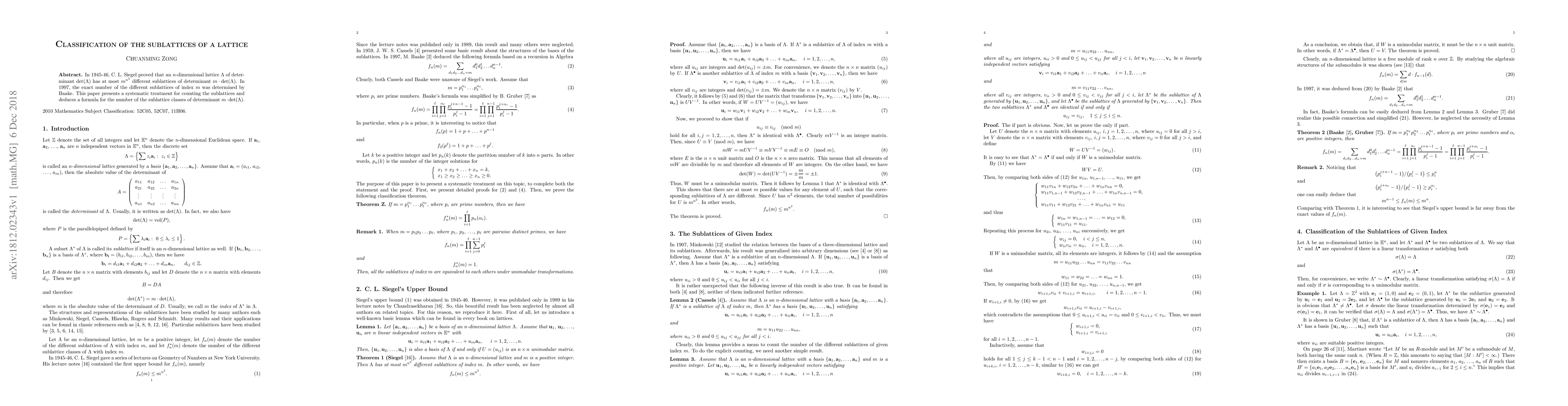 Researchers developed a formula to count sublattices of a given lattice, providing an exact number for classes with specific determinants. The discovery builds on previous work and expands our understanding of lattices and their substructures.