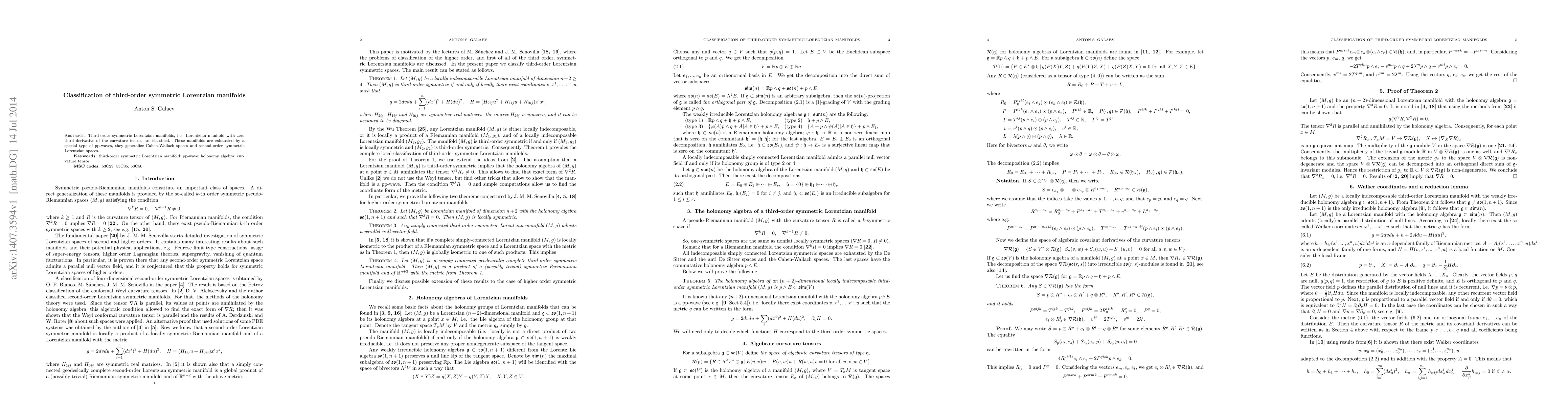 Summary: This paper classifies third-order symmetric Lorentzian manifolds, revealing they are a special type of pp-wave and generalize Cahen-Wallach spaces and second-order symmetric Lorentzian spaces. The classification provides a comprehensive understanding of these manifolds' geometric properties.