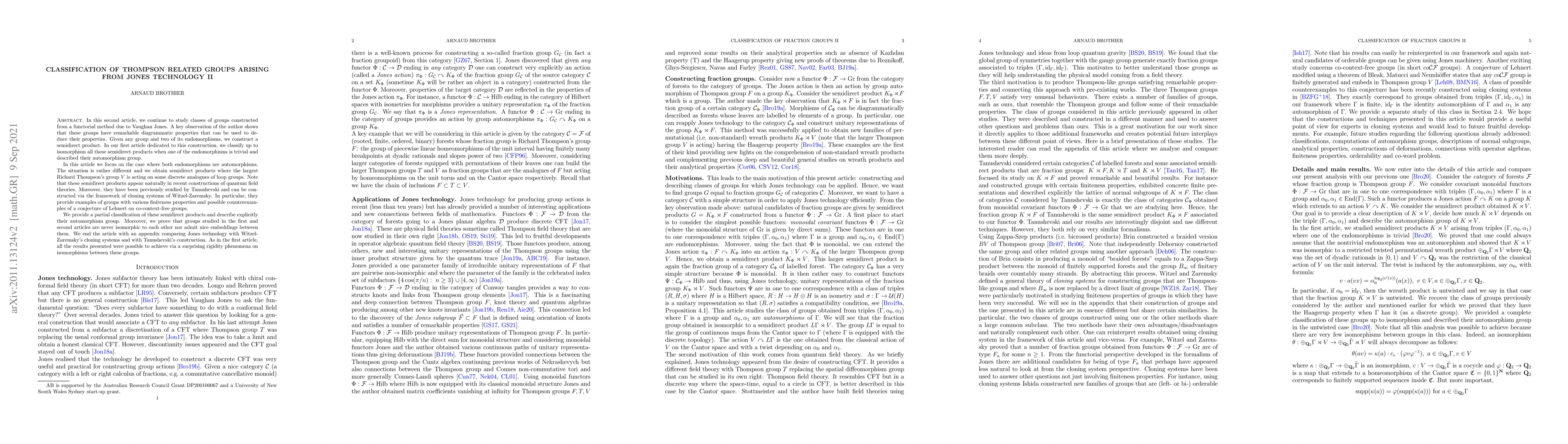 In this second article, we continue to study classes of groups constructed from a functorial method due to Vaughan Jones. A key observation of the author shows that these groups have remarkable diagrammatic properties that can be used to deduce their properties. Given any group and two of its endomorphisms, we construct a semidirect product. In our first article dedicated to this construction, we classify up to isomorphism all these semidirect products when one of the endomorphisms is trivial and described their automorphism group. In this article we focus on the case where both endomorphisms are automorphisms. The situation is rather different and we obtain semidirect products where the largest Richard Thompson's group $V$ is acting on some discrete analogues of loop groups. Note that these semidirect products appear naturally in recent constructions of quantum field theories. Moreover, they have been previously studied by Tanushevski and can be constructed via the framework of cloning systems of Witzel-Zaremsky. In particular, they provide examples of groups with various finiteness properties and possible counterexamples of a conjecture of Lehnert on co-context-free groups. We provide a partial classification of these semidirect products and describe explicitly their automorphism group. Moreover, we prove that groups studied in the first and second articles are never isomorphic to each other nor admit nice embeddings between them. We end the article with an appendix comparing Jones technology with Witzel-Zaremsky's cloning systems and with Tanushevski's construction. As in the first article, all the results presented were possible to achieve via a surprising rigidity phenomena on isomorphisms between these groups.