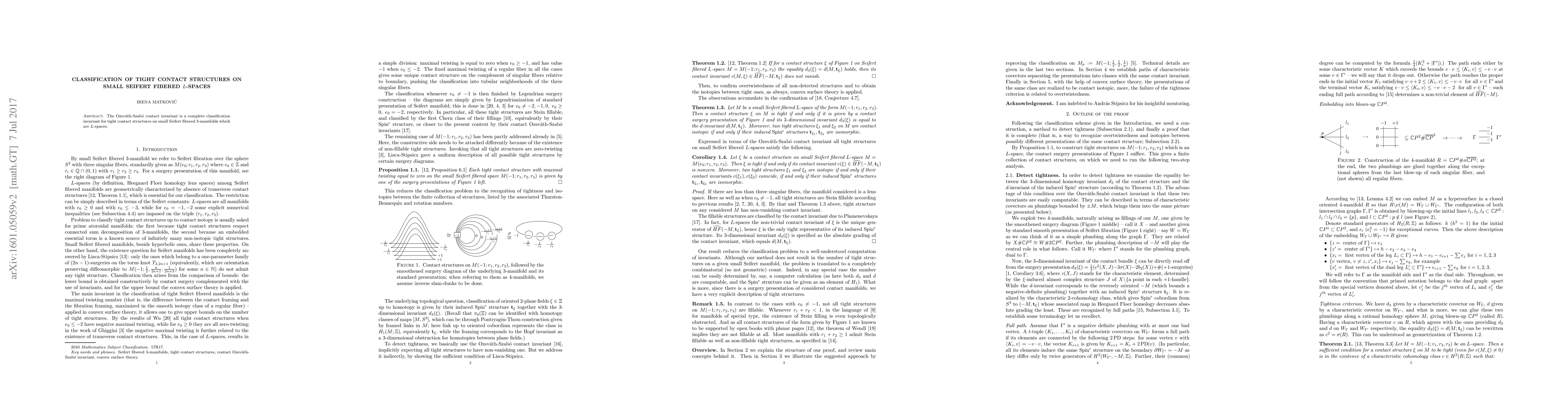 Summary: This paper presents a comprehensive classification of tight contact structures on small Seifert fibered 3-manifolds that are L-spaces using the Ozsvath-Szabo contact invariant. The method provides a complete invariant for distinguishing these contact structures.