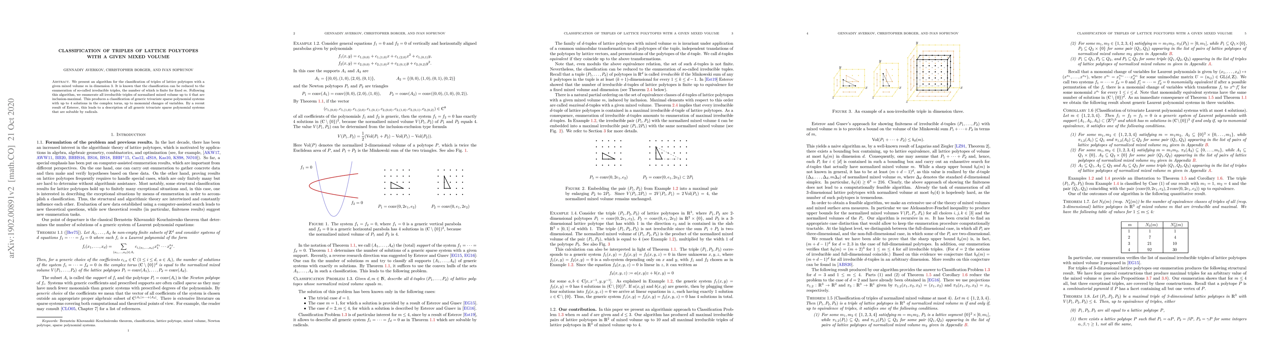This paper proposes an algorithm to classify triples of lattice polytopes with a fixed mixed volume in dimension 3, enumerating all irreducible triples up to normalized mixed volume 4. This classification aids in understanding generic trivariate sparse polynomial systems with up to 4 solutions, leading to a description of those solvable by radicals.