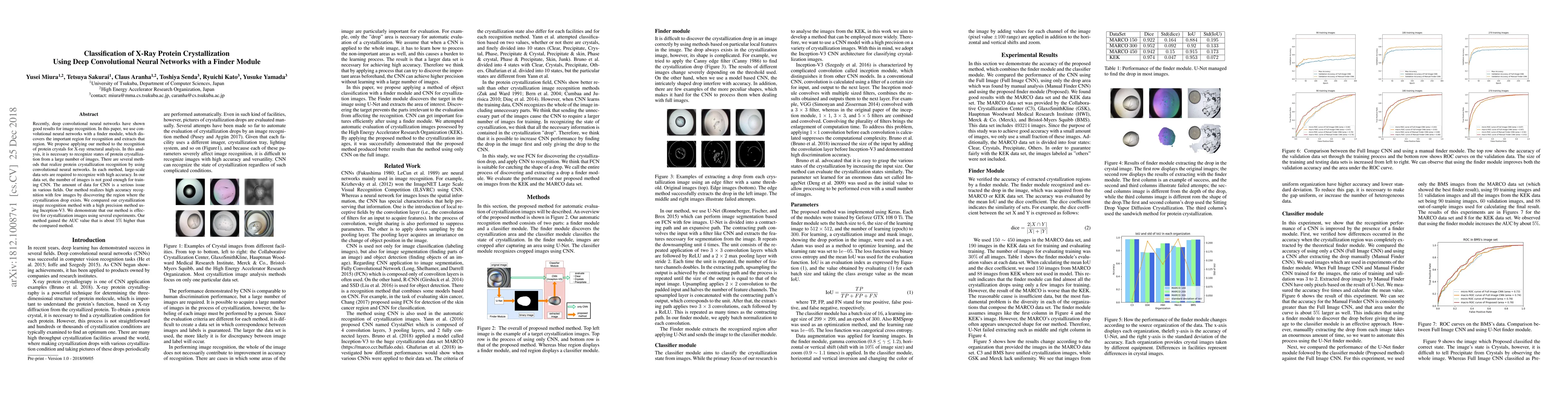 This paper proposes a deep convolutional neural network with a finder module to recognize protein crystallization states from X-ray images, addressing the challenge of limited data for training. The method achieves high accuracy recognition with fewer images by identifying the critical region of crystallization, demonstrating a 5% higher AUC value compared to a high-precision method using Inception-V3.