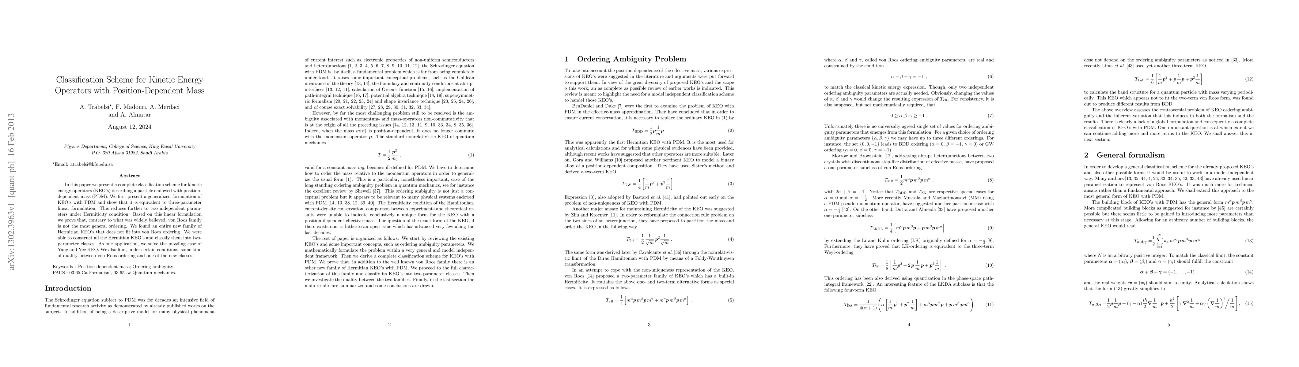 Researchers have developed a new classification scheme for kinetic energy operators with position-dependent mass, revealing a broader class of Hermitian operators than previously thought, and establishing connections between different ordering schemes.