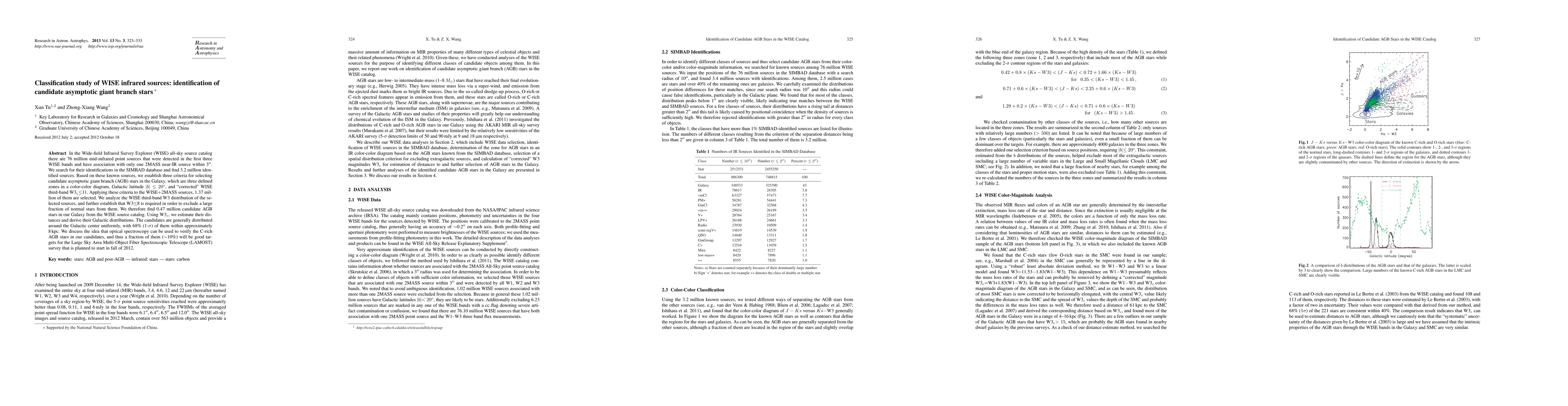 In the WISE all-sky source catalogue there are 76 million mid-infrared (MIR) point sources that were detected at the first three WISE bands and have association with only one 2MASS near-IR source within 3 arcsec. We search for their identifications in the SIMBAD database and find 3.2 million identified sources. Based on these known sources, we establish three criteria for selecting candidate AGB stars in the Galaxy, which are three defined occupation zones in a color-color diagram, Galactic latitude |gb|< 20 deg, and "corrected" WISE third-band W3c < 11. Applying these criteria to the WISE+2MASS sources, 1.37 million of them are selected. We analyze the WISE third-band W3 distribution of the selected sources, and further establish that W3 < 8 is required in order to exclude a large fraction of normal stars in them. We therefore find 0.47 million candidate AGB stars in our Galaxy from the WISE source catalogue. Using W3c, we estimate their distances and derive their Galactic distributions. The candidates are generally located around the Galactic center uniformly, with 68% (1-sigma) of them within approximately 8 kpc. We discuss that optical spectroscopy can be used to verify the C-rich AGB stars in our candidates, and they will be good targets for the LAMOST survey that is planned to start from fall of 2012.