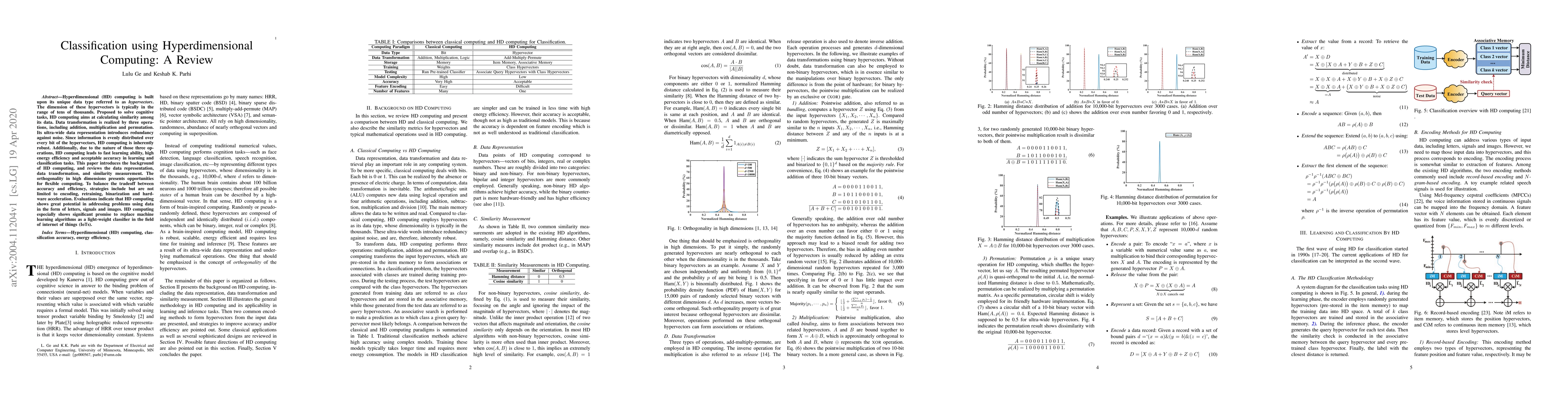This paper reviews hyperdimensional computing, emphasizing its use of hypervectors for robust, efficient, and fast classification. It explores data representation, transformation, and similarity measurement, highlighting its potential to replace traditional machine learning in lightweight IoT applications.