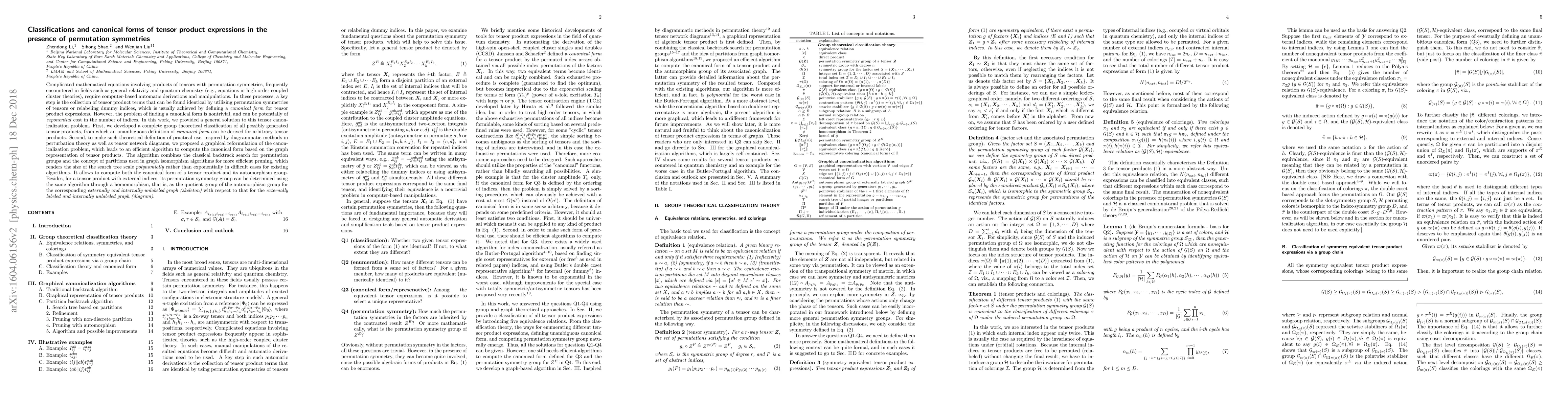 Complicated mathematical equations involving products of tensors with permutation symmetries, frequently encountered in fields such as general relativity and quantum chemistry (e.g., equations in high-order coupled cluster theories), require computer-based automatic derivations and manipulations. In these processes, a key step is the collection of tensor product terms that can be found identical by utilizing permutation symmetries of tensors or relabeling dummy indices, which is usually achieved by defining a canonical form for tensor product expressions. However, the problem of finding a canonical form is nontrivial, and can be potentially of exponential cost in the number of indices. In this work, we provided a general solution to this tensor canonicalization problem.
