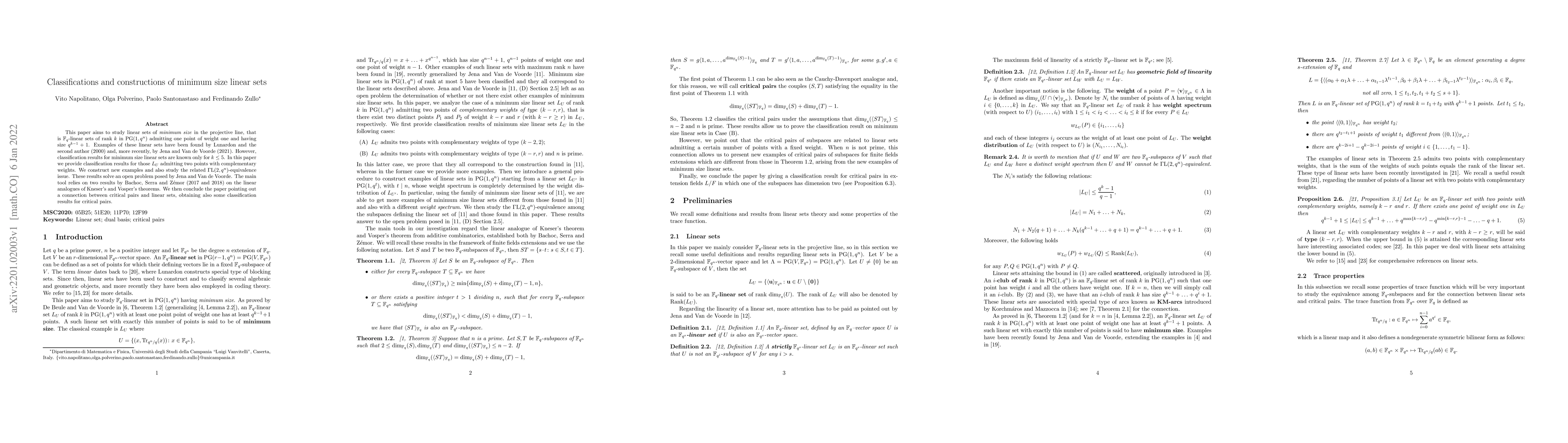 This paper aims to study linear sets of minimum size in the projective line, that is $\mathbb{F}_q$-linear sets of rank $k$ in $\mathrm{PG}(1,q^n)$ admitting one point of weight one and having size $q^{k-1}+1$. Examples of these linear sets have been found by Lunardon and the second author (2000) and, more recently, by Jena and Van de Voorde (2021). However, classification results for minimum size linear sets are known only for $k\leq 5$. In this paper we provide classification results for those $L_U$ admitting two points with complementary weights. We construct new examples and also study the related $\mathrm{\Gamma L}(2,q^n)$-equivalence issue. These results solve an open problem posed by Jena and Van de Voorde. The main tool relies on two results by Bachoc, Serra and Z\'emor (2017 and 2018) on the linear analogues of Kneser's and Vosper's theorems. We then conclude the paper pointing out a connection between critical pairs and linear sets, obtaining also some classification results for critical pairs.