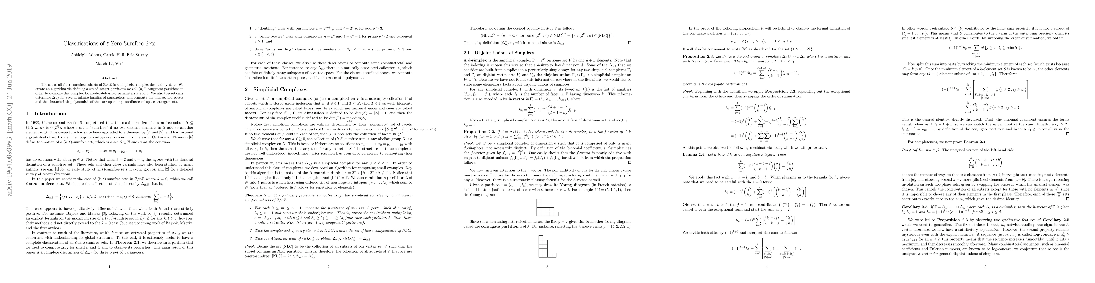 The set of all $\ell$-zero-sumfree subsets of $\mathbb{Z}/n\mathbb{Z}$ is a simplicial complex denoted by $\Delta_{n,\ell}$ We create an algorithm via defining a set of integer partitions we call $(n,\ell)$-congruent partitions in order to compute this complex for moderately-sized parameters $n$ and $\ell$. We also theoretically determine $\Delta_{n,\ell}$ for several infinite families of parameters, and compute the intersection lattices and the characteristic polynomials of the corresponding coordinate subspace arrangements.