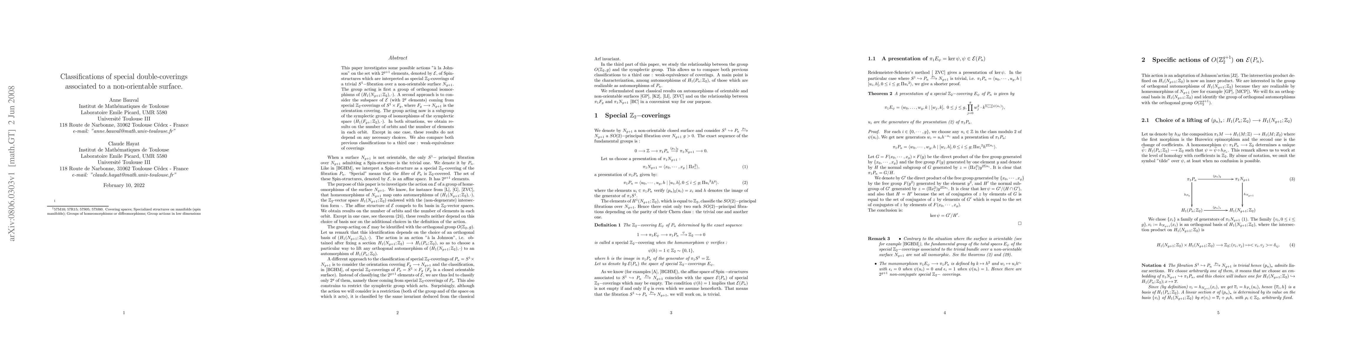 This paper investigates some actions "\`a la Johnson" on the set, denoted by ${\cal E}$, of Spin-structures which are interpreted as special double-coverings of a trivial $S^1-$fibration over a non-orientable surface $N_{g+1}$. The group acting is first a group of orthogonal isomorphisms assoiciated to $N_{g+1}$. A second approach is to consider the subspace of ${\cal E}$ (with $2^{g}$ elements) coming from special double-coverings of $S^1\times F_g$, where $F_g$ is the orientation covering of $N_{g+1}$. The group acting now is a subgroup of the group of symplectic isomorphisms associated to $F_{g}$. In both situations, we obtain results on the number of orbits and the number of elements in each orbit. Except in one case, these results do not depend on any necessary choices. We compare both previous classifications to a third one: weak-equivalence of coverings