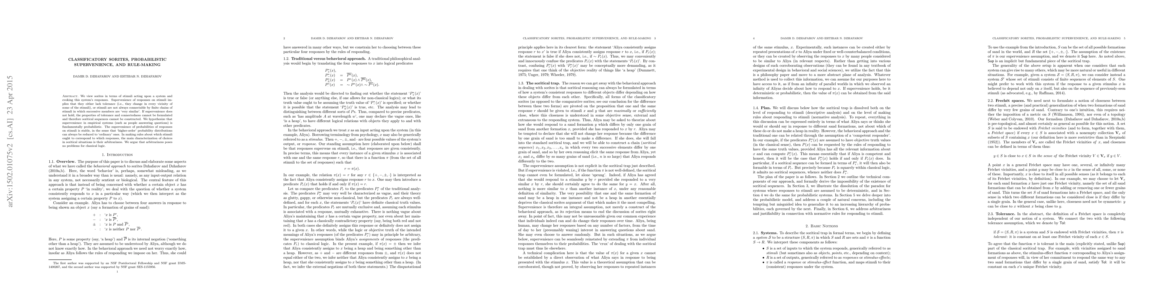 We view sorites in terms of stimuli acting upon a system and evoking this system's responses. Supervenience of responses on stimuli implies that they either lack tolerance (i.e., they change in every vicinity of some of the stimuli), or stimuli are not always connectable by finite chains of stimuli in which successive members are `very similar'. If supervenience does not hold, the properties of tolerance and connectedness cannot be formulated and therefore soritical sequences cannot be constructed. We hypothesize that supervenience in empirical systems (such as people answering questions) is fundamentally probabilistic. The supervenience of probabilities of responses on stimuli is stable, in the sense that `higher-order' probability distributions can always be reduced to `ordinary' ones. In making rules about which stimuli ought to correspond to which responses, the main characterization of choices in soritical situations is their arbitrariness. We argue that arbitrariness poses no problems for classical logic.
