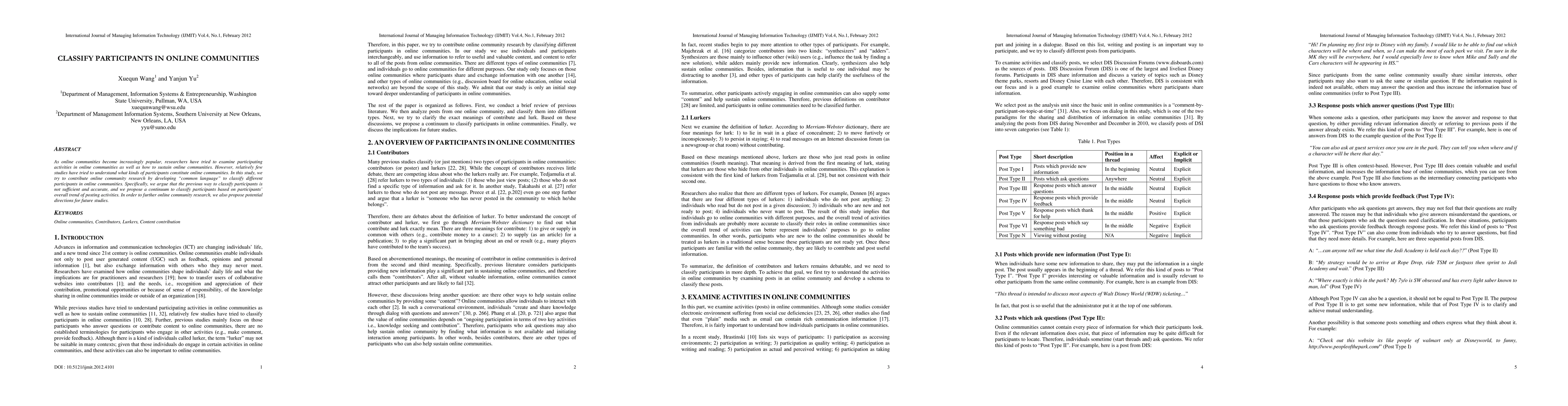 This study aims to improve the classification of participants in online communities by proposing a new continuum based on posting activity trends, arguing that existing methods are insufficient. It suggests future research directions to further understand online community dynamics.