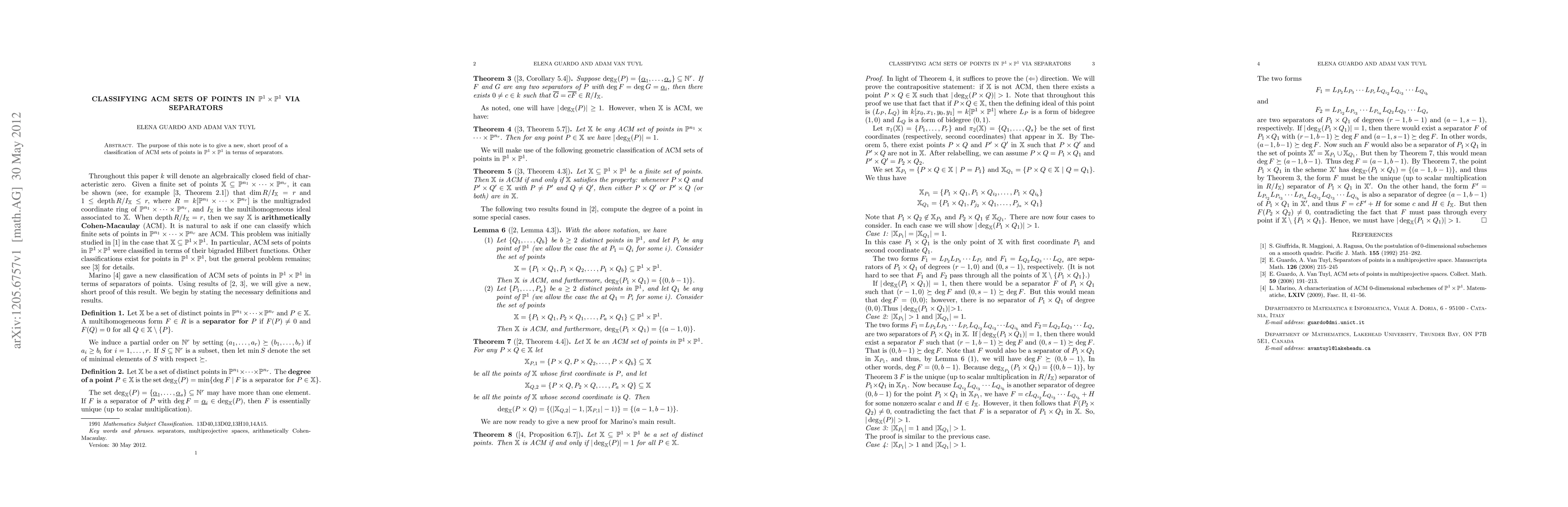 The purpose of this note is to give a new, short proof of a classification of ACM sets of points in $P^1XP^1$ in terms of separators.