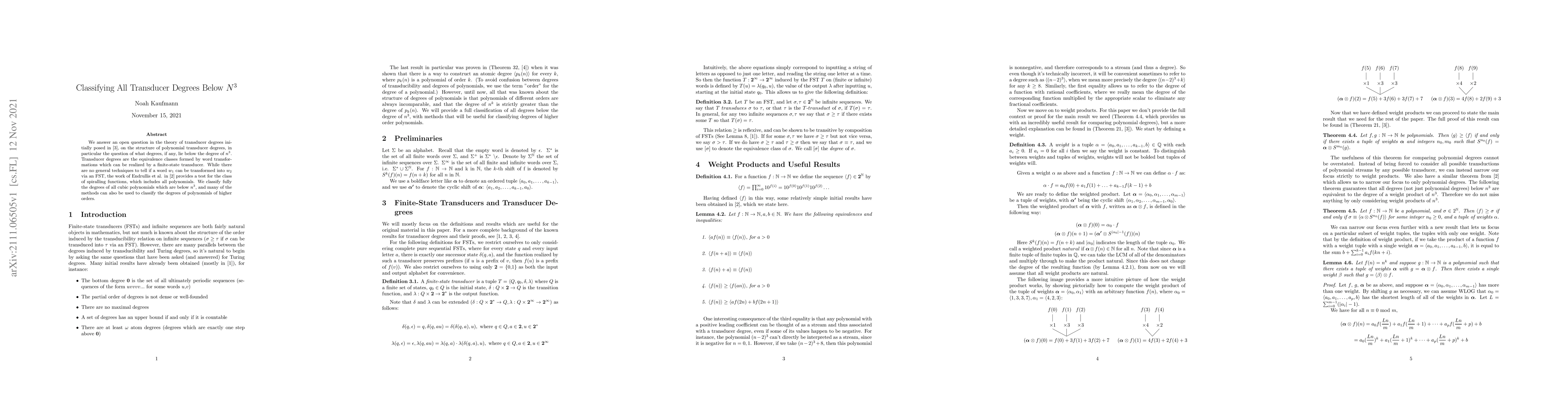 We answer an open question in the theory of transducer degrees initially posed in [3], on the structure of polynomial transducer degrees, in particular the question of what degrees, if any, lie below the degree of $n^3$. Transducer degrees are the equivalence classes formed by word transformations which can be realized by a finite-state transducer. While there are no general techniques to tell if a word $w_1$ can be transformed into $w_2$ via an FST, the work of Endrullis et al. in [2] provides a test for the class of spiralling functions, which includes all polynomials. We classify fully the degrees of all cubic polynomials which are below $n^3$, and many of the methods can also be used to classify the degrees of polynomials of higher orders.