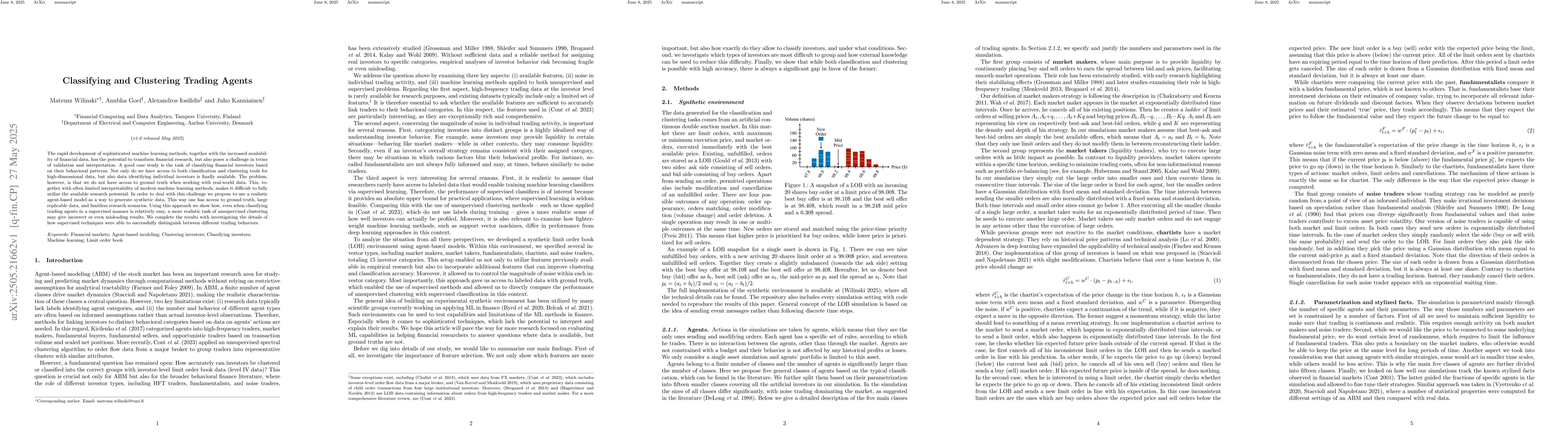 Researchers develop a method to generate synthetic data using agent-based models to classify and cluster trading agents, finding that supervised clustering can produce misleading results, but supervised techniques can distinguish between different behaviors.