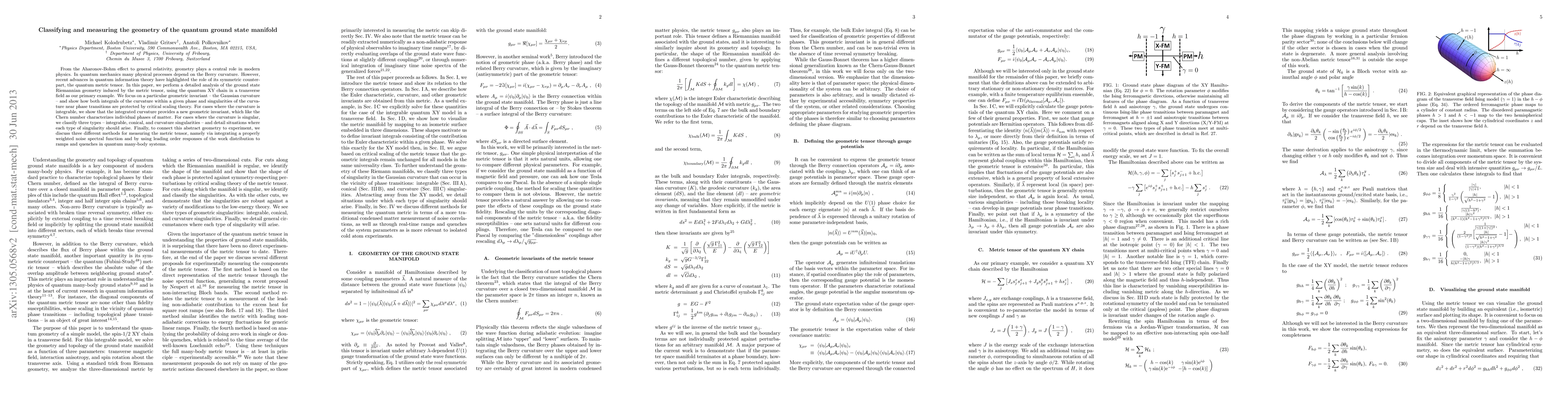 From the Aharonov-Bohm effect to general relativity, geometry plays a central role in modern physics. In quantum mechanics many physical processes depend on the Berry curvature. However, recent advances in quantum information theory have highlighted the role of its symmetric counterpart, the quantum metric tensor. In this paper, we perform a detailed analysis of the ground state Riemannian geometry induced by the metric tensor, using the quantum XY chain in a transverse field as our primary example. We focus on a particular geometric invariant -- the Gaussian curvature -- and show how both integrals of the curvature within a given phase and singularities of the curvature near phase transitions are protected by critical scaling theory. For cases where the curvature is integrable, we show that the integrated curvature provides a new geometric invariant, which like the Chern number characterizes individual phases of matter. For cases where the curvature is singular, we classify three types -- integrable, conical, and curvature singularities -- and detail situations where each type of singularity should arise. Finally, to connect this abstract geometry to experiment, we discuss three different methods for measuring the metric tensor, namely via integrating a properly weighted noise spectral function and by using leading order responses of the work distribution to ramps and quenches in quantum many-body systems.