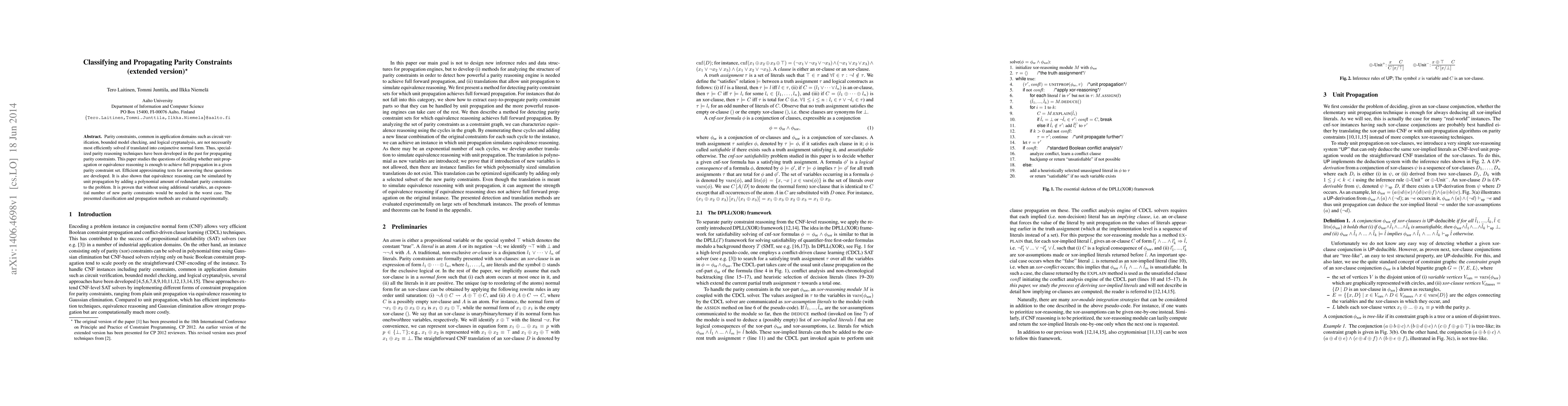 This paper explores specialized techniques for propagating parity constraints, determining when unit propagation or equivalence reasoning suffices, and develops efficient tests for these decisions. It also proves that equivalence reasoning can be simulated via unit propagation with polynomial redundancy, but exponential redundancy is required without additional variables. Experimental evaluations assess the effectiveness of the proposed methods.