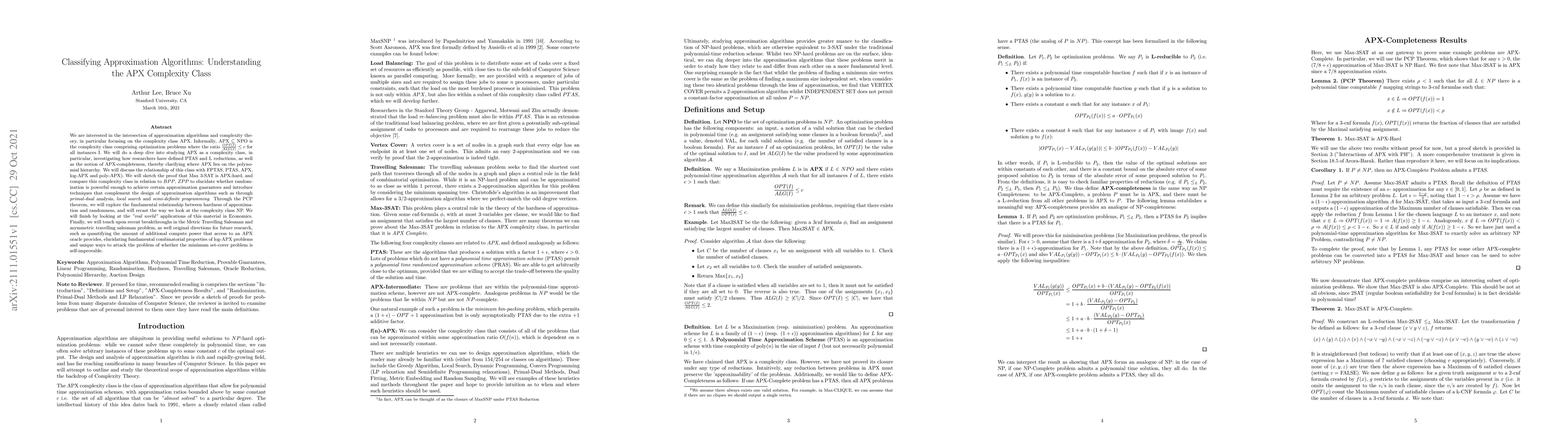 We are interested in the intersection of approximation algorithms and complexity theory, in particular focusing on the complexity class APX. Informally, APX $\subseteq$ NPO is the complexity class comprising optimization problems where the ratio $\frac{OPT(I)}{ALG(I)} \leq c$ for all instances I. We will do a deep dive into studying APX as a complexity class, in particular, investigating how researchers have defined PTAS and L reductions, as well as the notion of APX-completeness, thereby clarifying where APX lies on the polynomial hierarchy. We will discuss the relationship of this class with FPTAS, PTAS, APX, log-APX and poly-APX). We will sketch the proof that Max 3-SAT is APX-hard, and compare this complexity class in relation to $BPP$, $ZPP$ to elucidate whether randomization is powerful enough to achieve certain approximation guarantees and introduce techniques that complement the design of approximation algorithms such as through \textit{primal-dual} analysis, \textit{local search} and \textit{semi-definite programming}. Through the PCP theorem, we will explore the fundamental relationship between hardness of approximation and randomness, and will recast the way we look at the complexity class NP. We will finish by looking at the \textit{"real world"} applications of this material in Economics. Finally, we will touch upon recent breakthroughs in the Metric Travelling Salesman and asymmetric travelling salesman problem, as well original directions for future research, such as quantifying the amount of additional compute power that access to an APX oracle provides, elucidating fundamental combinatorial properties of log-APX problems and unique ways to attack the problem of whether the minimum set-cover problem is self-improvable.