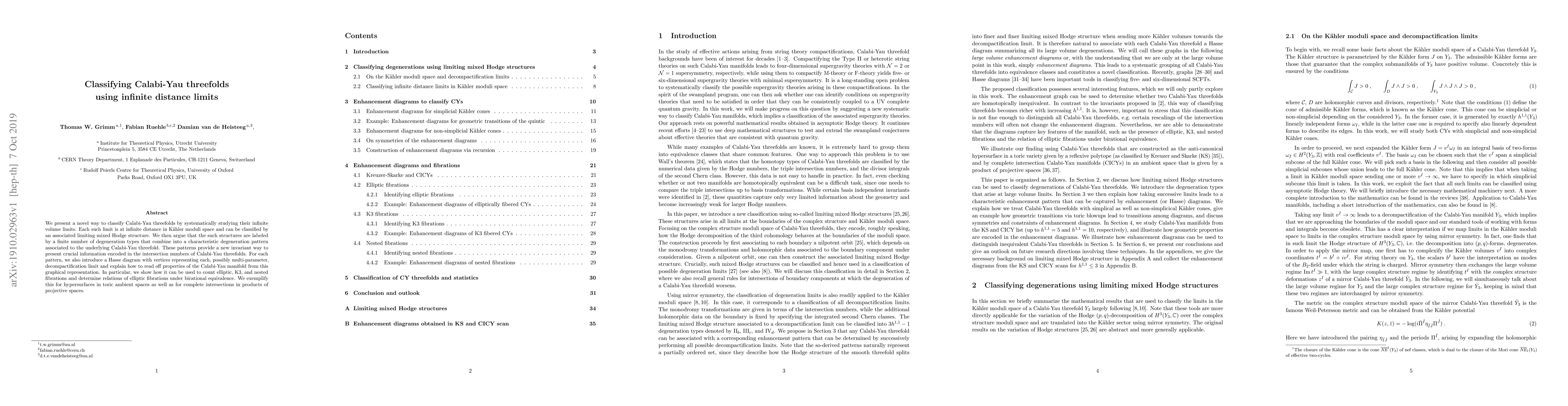 We present a novel way to classify Calabi-Yau threefolds by systematically studying their infinite volume limits. Each such limit is at infinite distance in Kahler moduli space and can be classified by an associated limiting mixed Hodge structure. We then argue that the such structures are labeled by a finite number of degeneration types that combine into a characteristic degeneration pattern associated to the underlying Calabi-Yau threefold. These patterns provide a new invariant way to present crucial information encoded in the intersection numbers of Calabi-Yau threefolds. For each pattern, we also introduce a Hasse diagram with vertices representing each, possibly multi-parameter, decompactification limit and explain how to read off properties of the Calabi-Yau manifold from this graphical representation. In particular, we show how it can be used to count elliptic, K3, and nested fibrations and determine relations of elliptic fibrations under birational equivalence. We exemplify this for hypersurfaces in toric ambient spaces as well as for complete intersections in products of projective spaces.