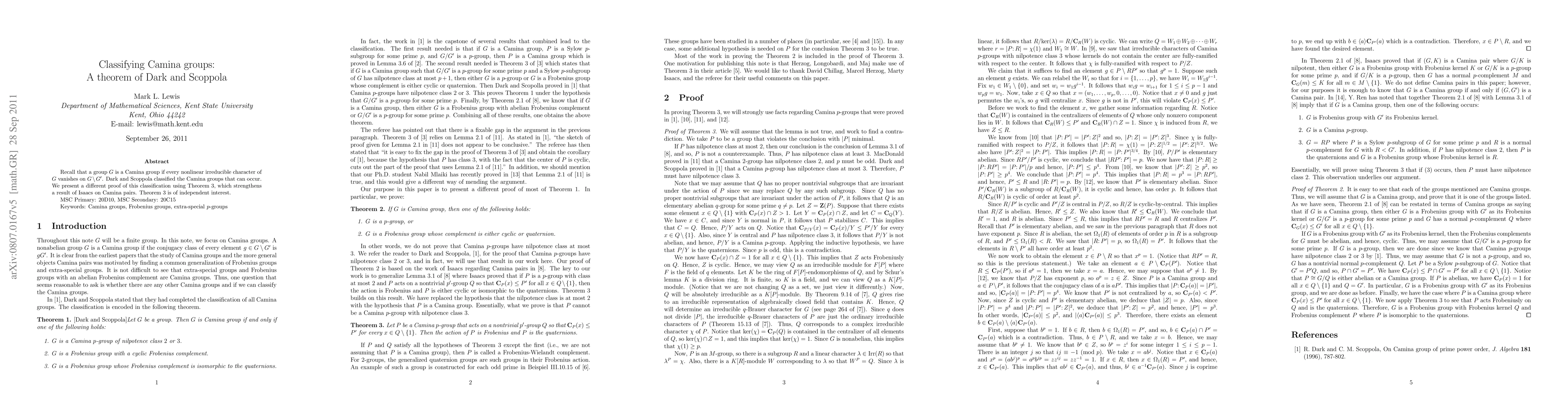 Recall that a group $G$ is a Camina group if every nonlinear irreducible character of $G$ vanishes on $G \setminus G'$. Dark and Scoppola classified the Camina groups that can occur. We present a different proof of this classification using Theorem 2, which strengthens a result of Isaacs on Camina pairs. Theorem 2 is of independent interest.
