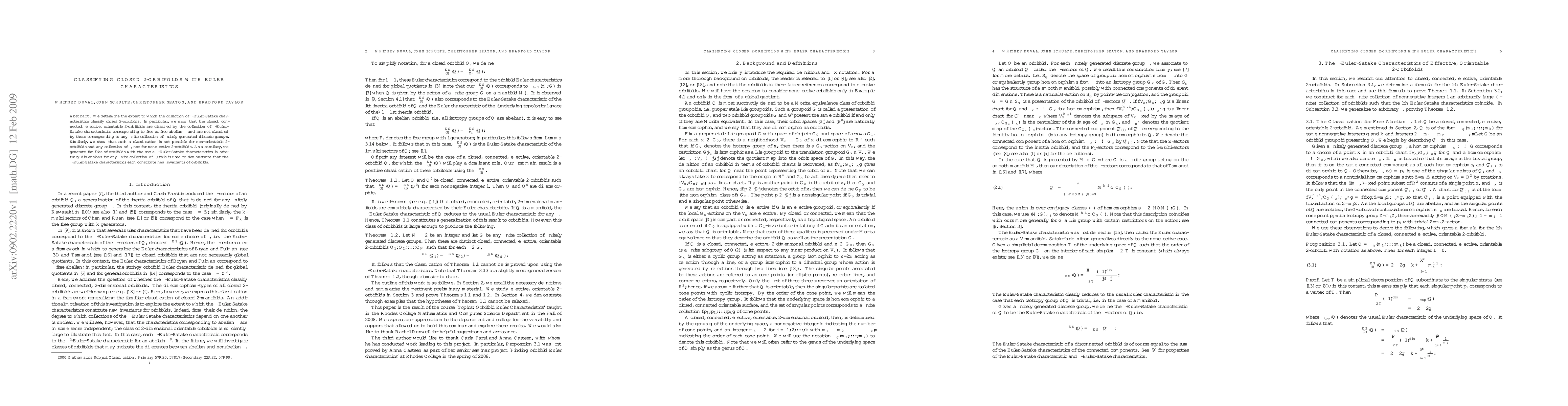 This paper classifies closed 2-orbifolds based on their Euler characteristics, showing that free or free abelian groups classify connected, effective, orientable orbifolds, while finite collections of other groups do not.