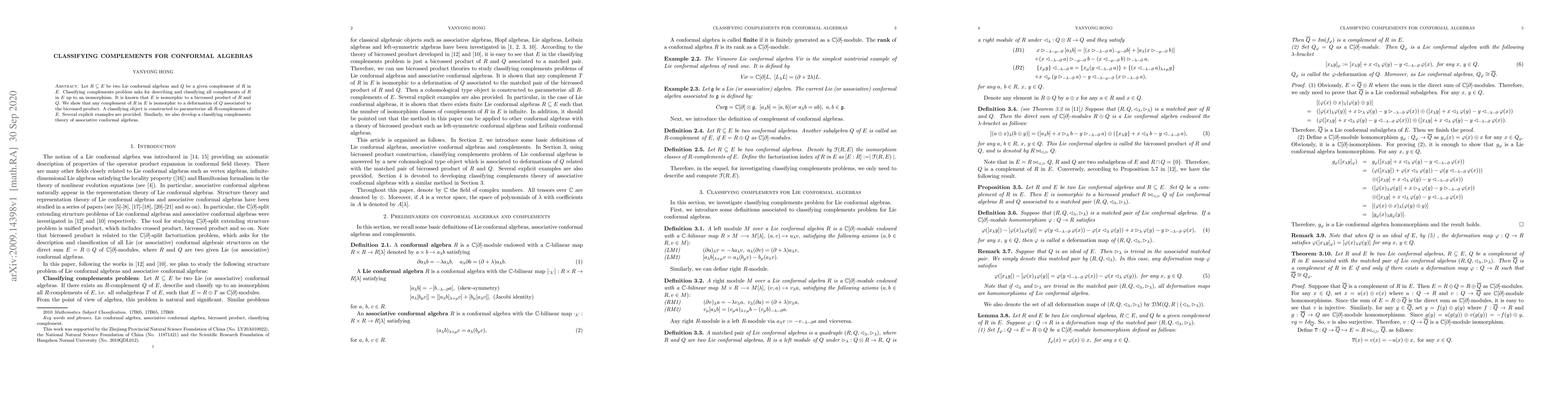 This paper addresses the classifying complements problem for Lie conformal algebras, demonstrating that any complement of a given subalgebra can be viewed as a deformation of a specified subalgebra. A classifying object is introduced to parameterize all such complements, with explicit examples provided. The authors also extend this theory to associative conformal algebras.