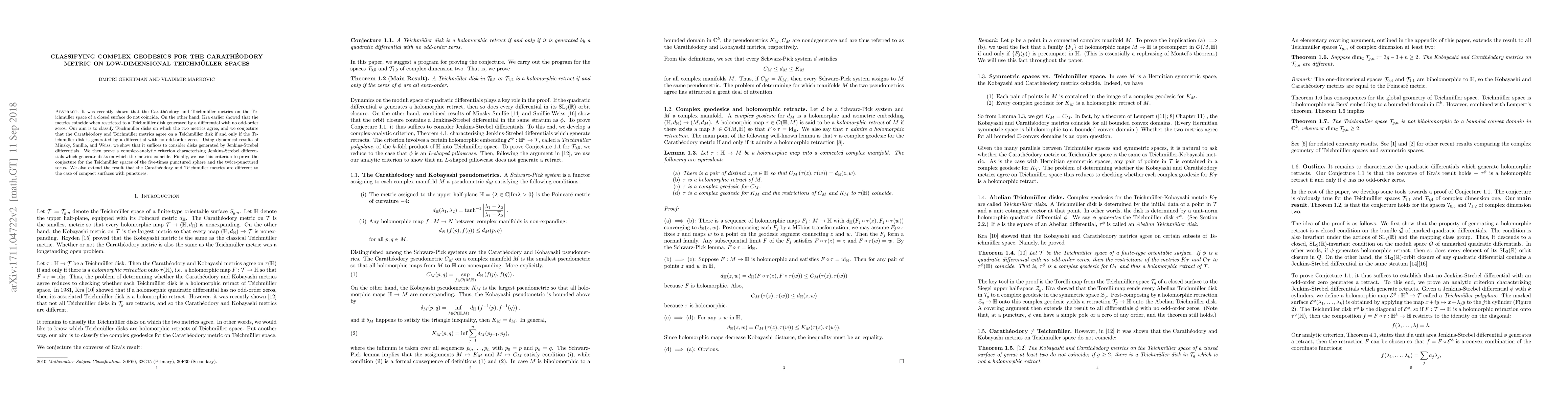 This paper classifies Teichmüller disks where the Carathéodory and Teichmüller metrics coincide, proving that they match if and only if generated by differentials with no odd-order zeros. The authors use complex-analytic criteria and results from dynamical systems to support their conjecture for specific punctured surfaces.