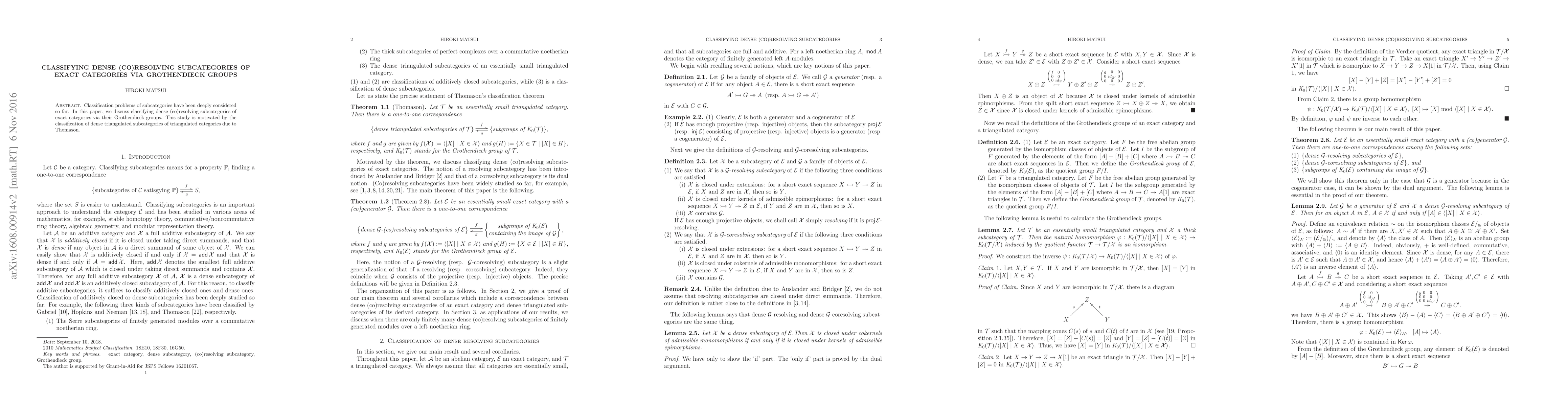 This paper explores the classification of dense (co)resolving subcategories within exact categories using their associated Grothendieck groups, inspired by Thomason's work on dense triangulated subcategories in triangulated categories. The study leverages Grothendieck groups to provide a new perspective on these subcategories.