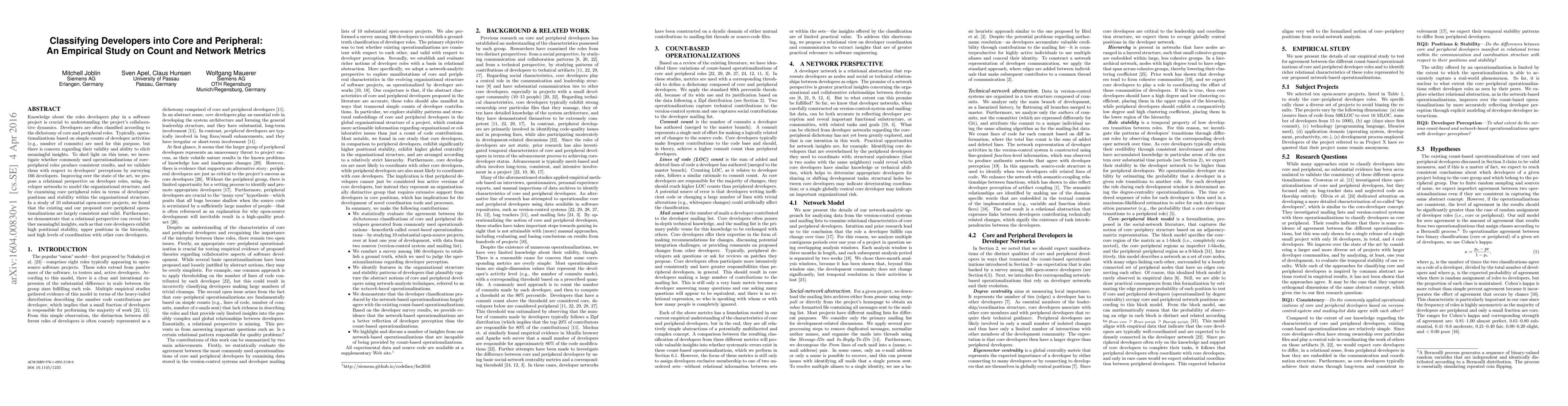 Knowledge about the roles developers play in a software project is crucial to understanding the project's collaborative dynamics. Developers are often classified according to the dichotomy of core and peripheral roles. Typically, operationalizations based on simple counts of developer activities (e.g., number of commits) are used for this purpose, but there is concern regarding their validity and ability to elicit meaningful insights. To shed light on this issue, we investigate whether commonly used operationalizations of core--peripheral roles produce consistent results, and we validate them with respect to developers' perceptions by surveying 166 developers. Improving over the state of the art, we propose a relational perspective on developer roles, using developer networks to model the organizational structure, and by examining core--peripheral roles in terms of developers' positions and stability within the organizational structure. In a study of 10 substantial open-source projects, we found that the existing and our proposed core--peripheral operationalizations are largely consistent and valid. Furthermore, we demonstrate that a relational perspective can reveal further meaningful insights, such as that core developers exhibit high positional stability, upper positions in the hierarchy, and high levels of coordination with other core developers.