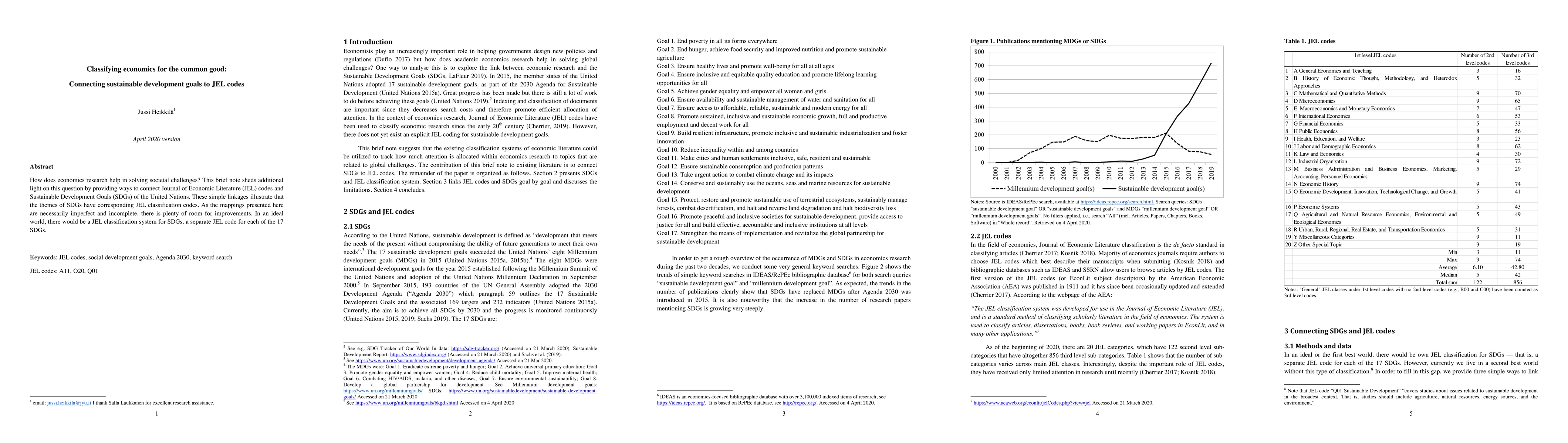 How does economics research help in solving societal challenges? This brief note sheds additional light on this question by providing ways to connect Journal of Economic Literature (JEL) codes and Sustainable Development Goals (SDGs) of the United Nations. These simple linkages illustrate that the themes of SDGs have corresponding JEL classification codes. As the mappings presented here are necessarily imperfect and incomplete, there is plenty of room for improvements. In an ideal world, there would be a JEL classification system for SDGs, a separate JEL code for each of the 17 SDGs.
