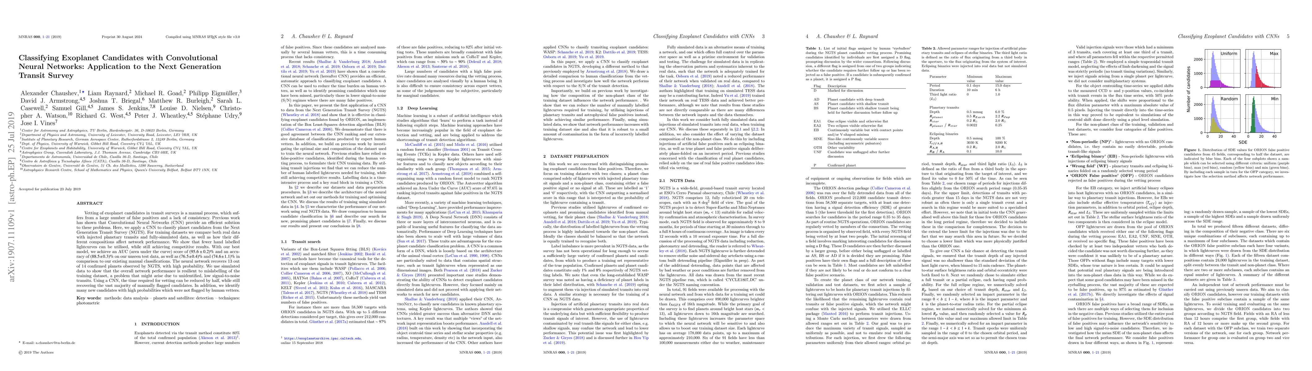 This paper applies Convolutional Neural Networks (CNN) to classify exoplanet candidates from the Next Generation Transit Survey (NGTS), achieving an AUC score of 95.6% and accuracy of 88.5% on unseen data, while reducing vetting time by half and identifying new candidates not flagged by human vetters.