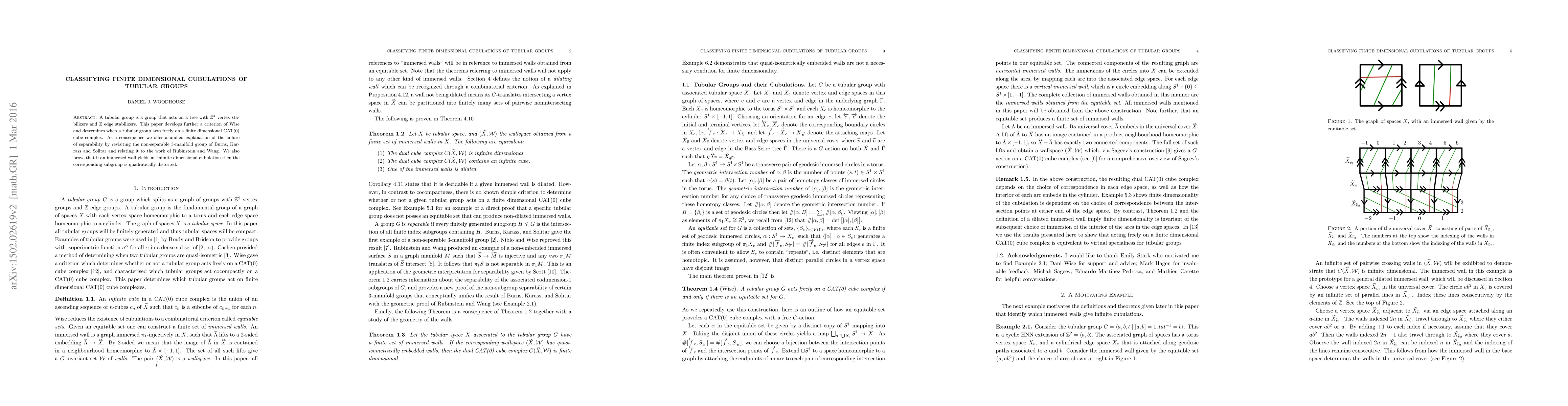 A tubular group is a group that acts on a tree with $\mathbb{Z}^2$ vertex stabilizers and $\mathbb{Z}$ edge stabilizers. This paper develops further a criterion of Wise and determines when a tubular group acts freely on a finite dimensional CAT(0) cube complex. As a consequence we offer a unified explanation of the failure of separability by revisiting the non-separable 3-manifold group of Burns, Karrass and Solitar and relating it to the work of Rubinstein and Wang. We also prove that if an immersed wall yields an infinite dimensional cubulation then the corresponding subgroup is quadratically distorted.