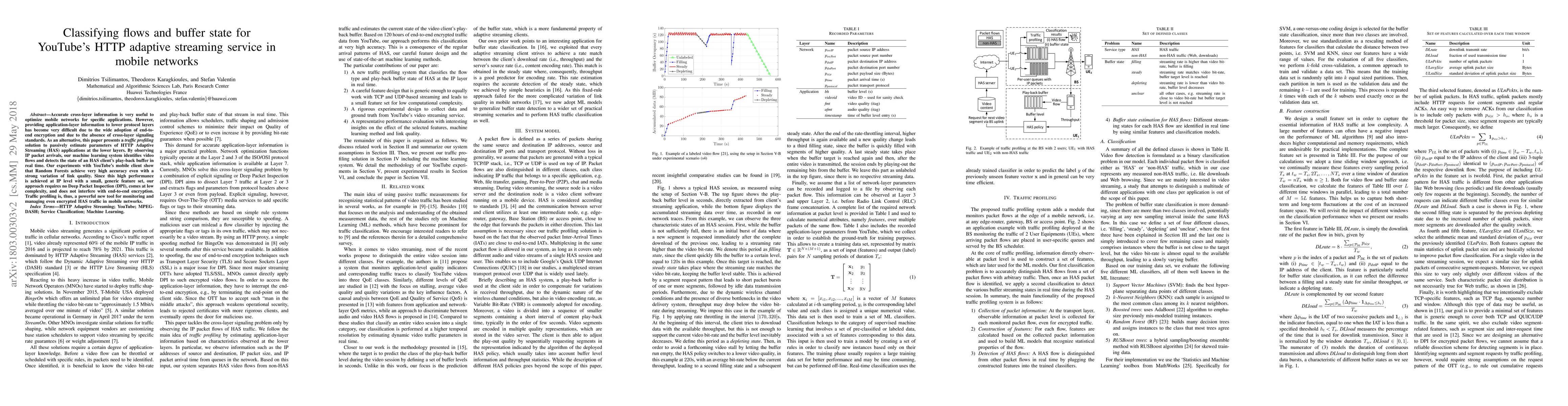This paper proposes a traffic profiling method using machine learning to passively identify and classify HTTP Adaptive Streaming (HAS) flows and buffer states in YouTube's mobile streaming service, achieving high accuracy without Deep Packet Inspection or interference with end-to-end encryption. The approach leverages Random Forests to analyze IP packet arrivals, offering a low-complexity solution for optimizing mobile networks.