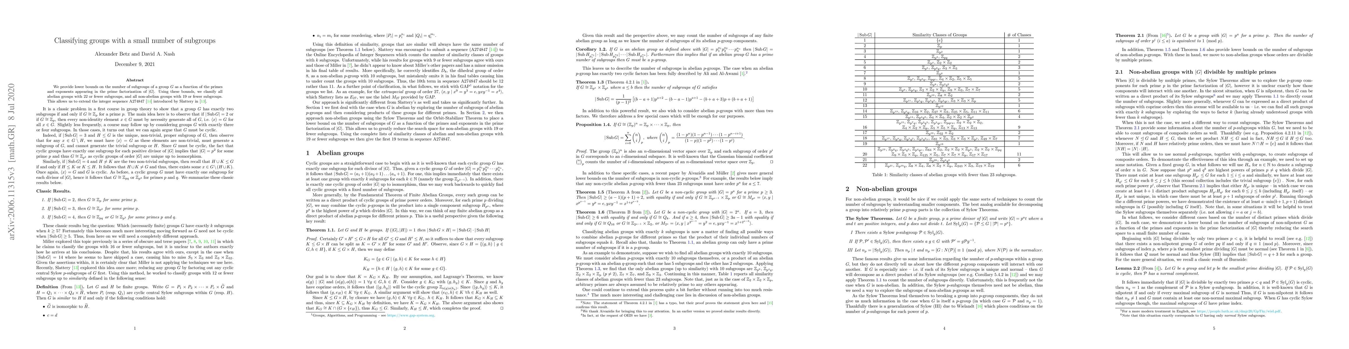 We provide lower bounds on the number of subgroups of a group $G$ as a function of the primes and exponents appearing in the prime factorization of $|G|$. Using these bounds, we classify all abelian groups with 22 or fewer subgroups, and all non-abelian groups with 19 or fewer subgroups. This allows us to extend the integer sequence A274847 \cite{OEIS} introduced by Slattery in \cite{Slattery}.