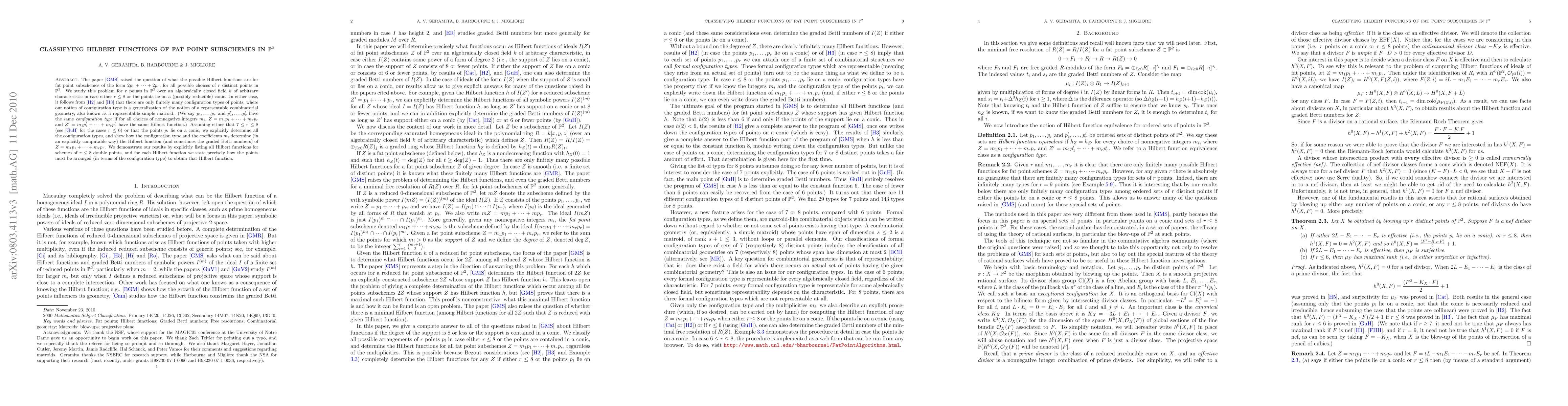 This paper classifies the possible Hilbert functions for fat point subschemes of the form $2p_1+...+2p_r$ in $\mathbb P^2$, focusing on configurations with $r \le 8$ points or points lying on a conic. It determines all configuration types and shows how these types and coefficients determine the Hilbert function and graded Betti numbers.