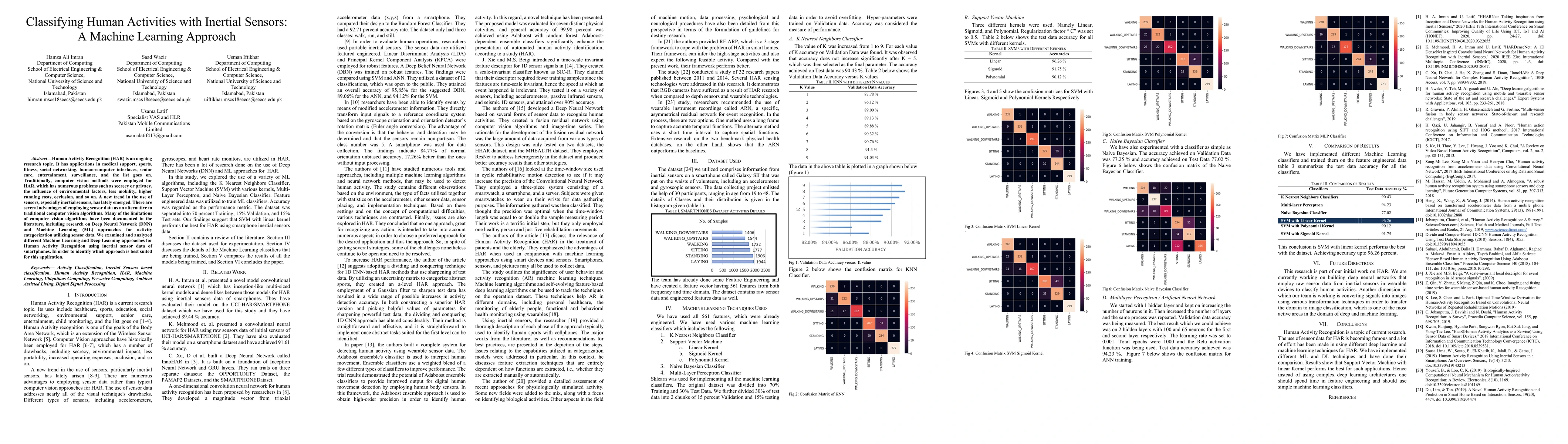 The study highlights the importance of feature engineering and machine learning classifiers for accurate human activity recognition