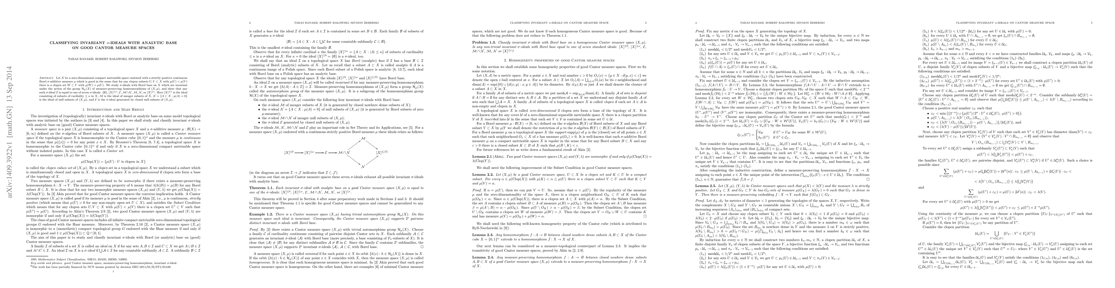 This paper classifies invariant $\sigma$-ideals with analytic base on good Cantor measure spaces, showing that any such $\sigma$-ideal is equivalent to one of seven specific $\sigma$-ideals, including the empty set, countable subsets, the ideal of meager sets, and the ideal of null sets.